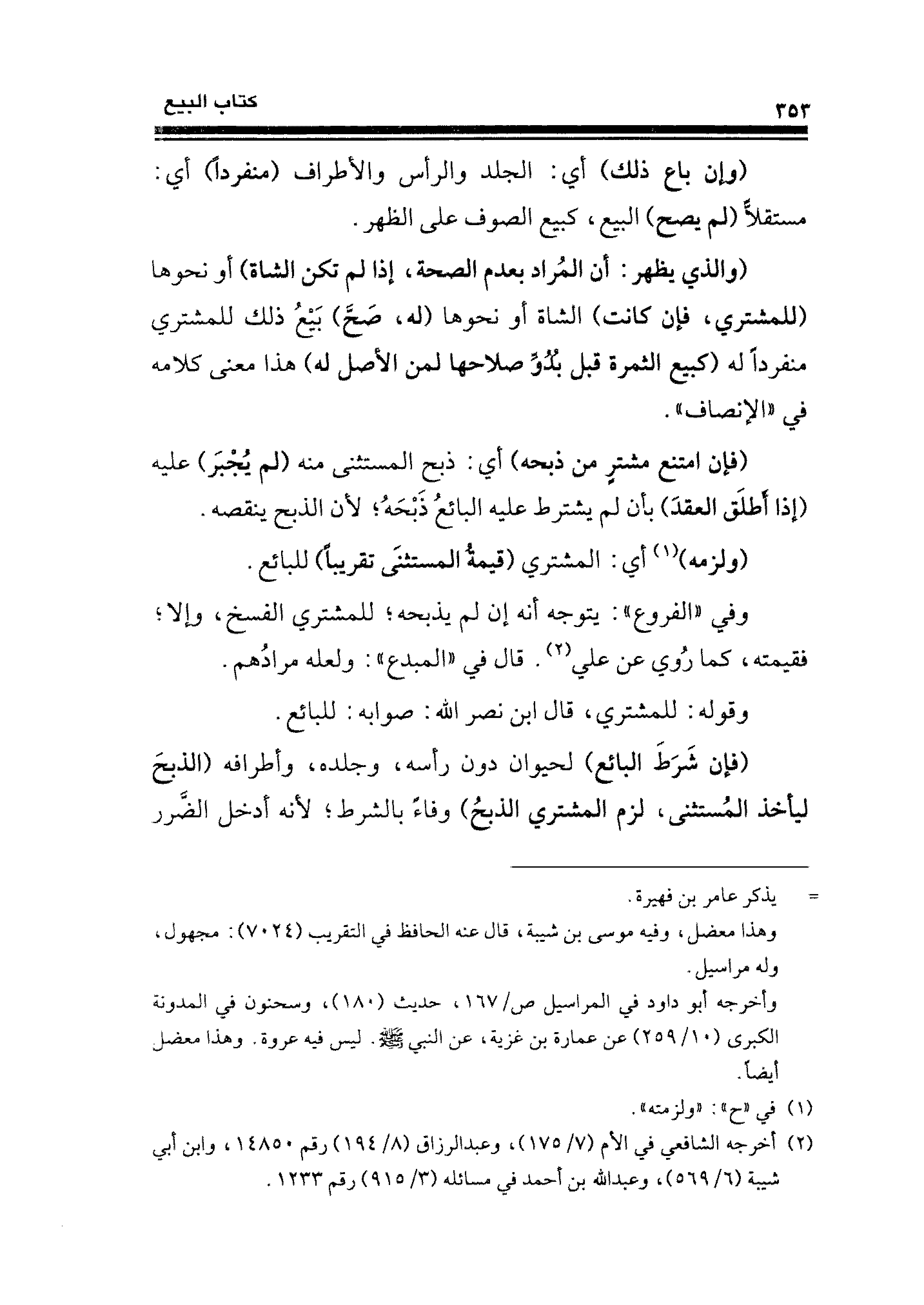 (فإن شَرَطَ البائع) لحيوان دون رأسه، وجلده، وأطرافه (الذبحَ ليأخذ المُستثنى، لزم المشتري الذبحُ) وفاءً بالشرط؛ لأنه أدخل الضرر