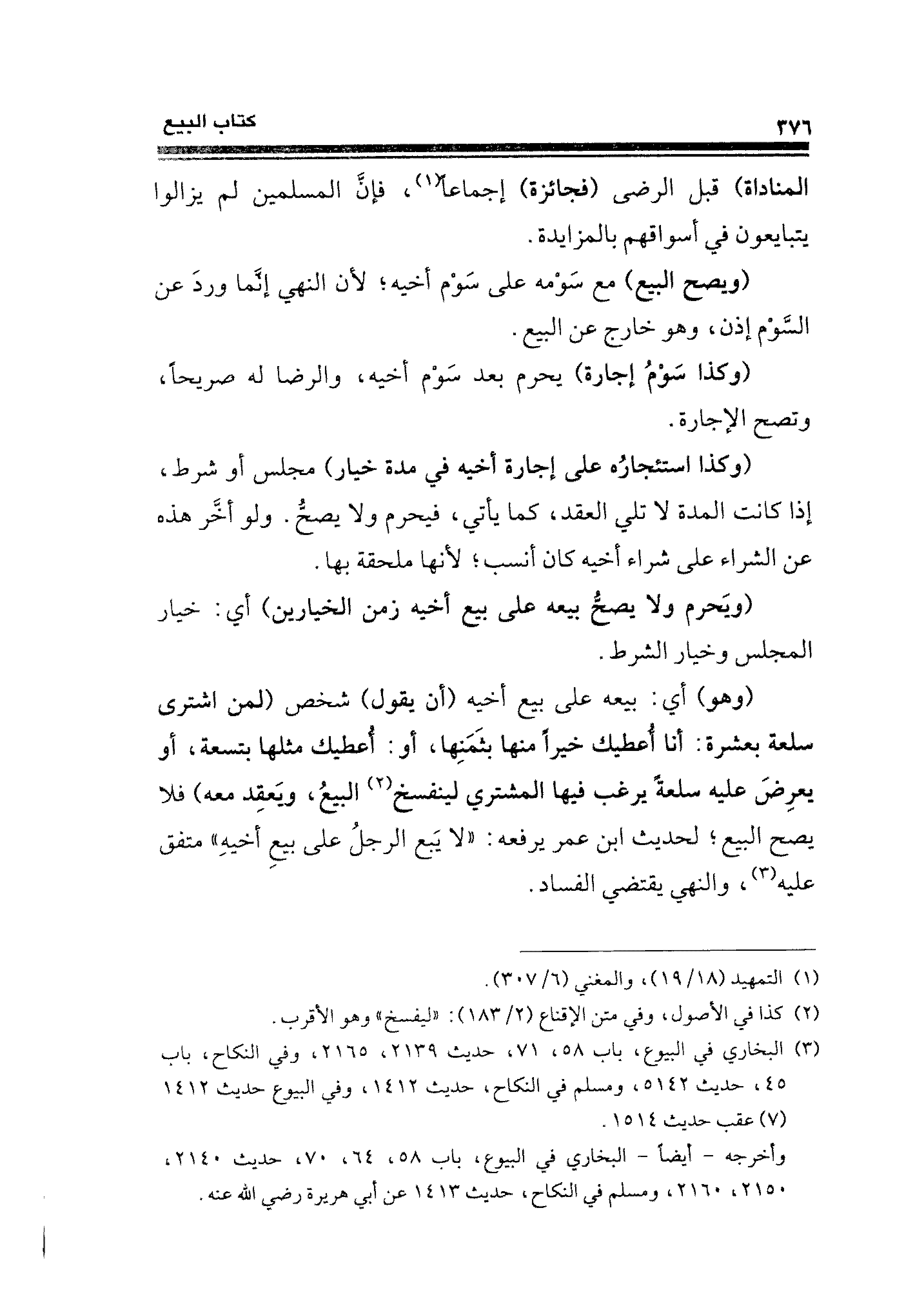(¬٣) البخاري في البيوع، باب ٥٨، ٧١، حديث ٢١٣٩، ٢١٦٥، وفي النكاح، باب ٤٥، حديث ٥١٤٢، ومسلم في النكاح، حديث ١٤١٢، وفي البيوع حديث ١٤١٢ (٧) عقب حديث ١٥١٤.