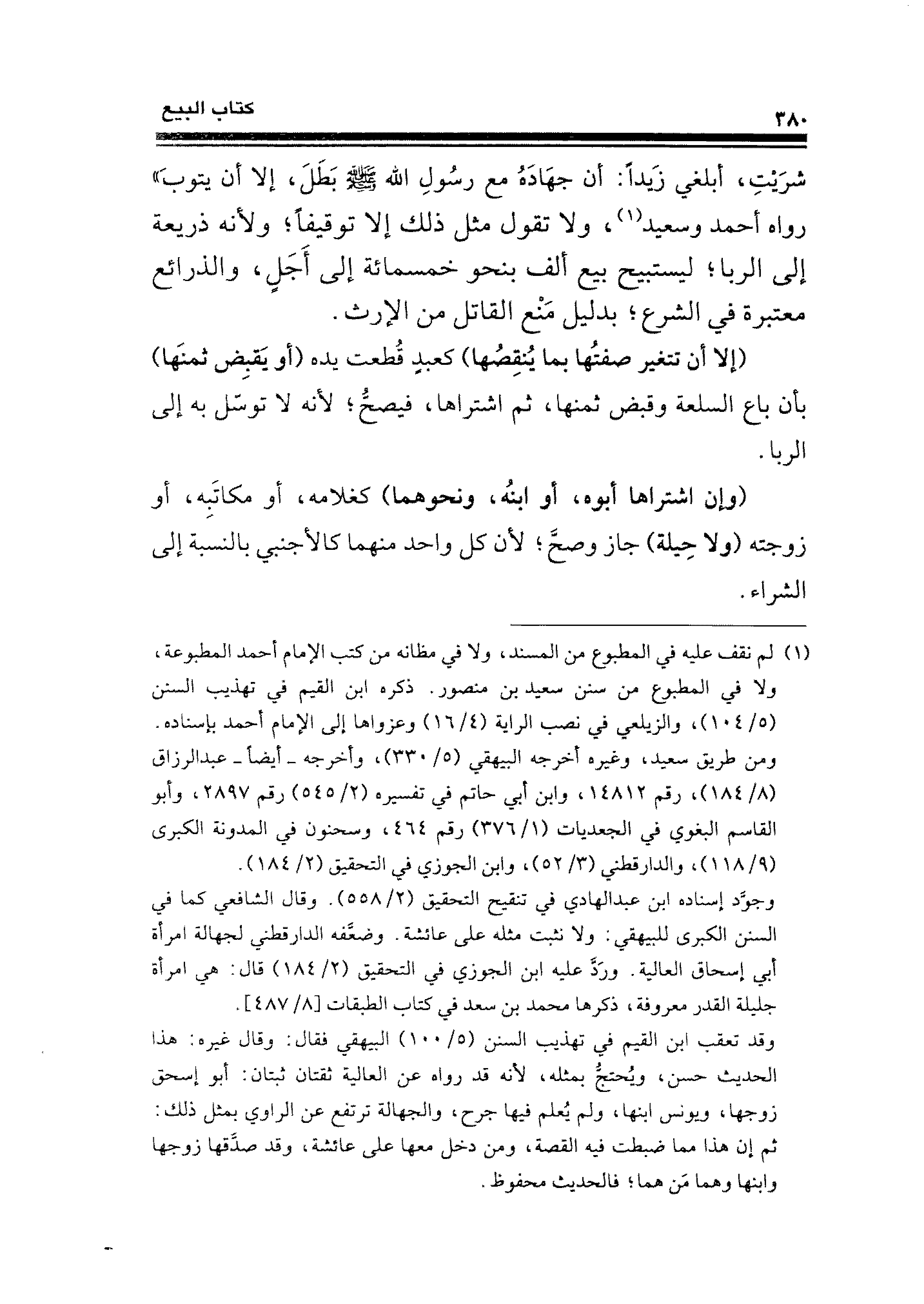 شرَيتِ، أبلغي زَيدًا: أن جهَادَهُ مع رسُولِ الله - صلى الله عليه وسلم - بَطَلَ، إلا أن يتوبَ" رواه أحمد وسعيد (¬١)، ولا تقول مثل ذلك إلا توقيفًا؛ ولأنه ذريعة إلى الربا؛ ليستبيح بيع ألف بنحو خمسمائة إلى أَجَلٍ، والذراع معتبرة في الشرع؛ بدليل مَنْع القاتل من الإرث.