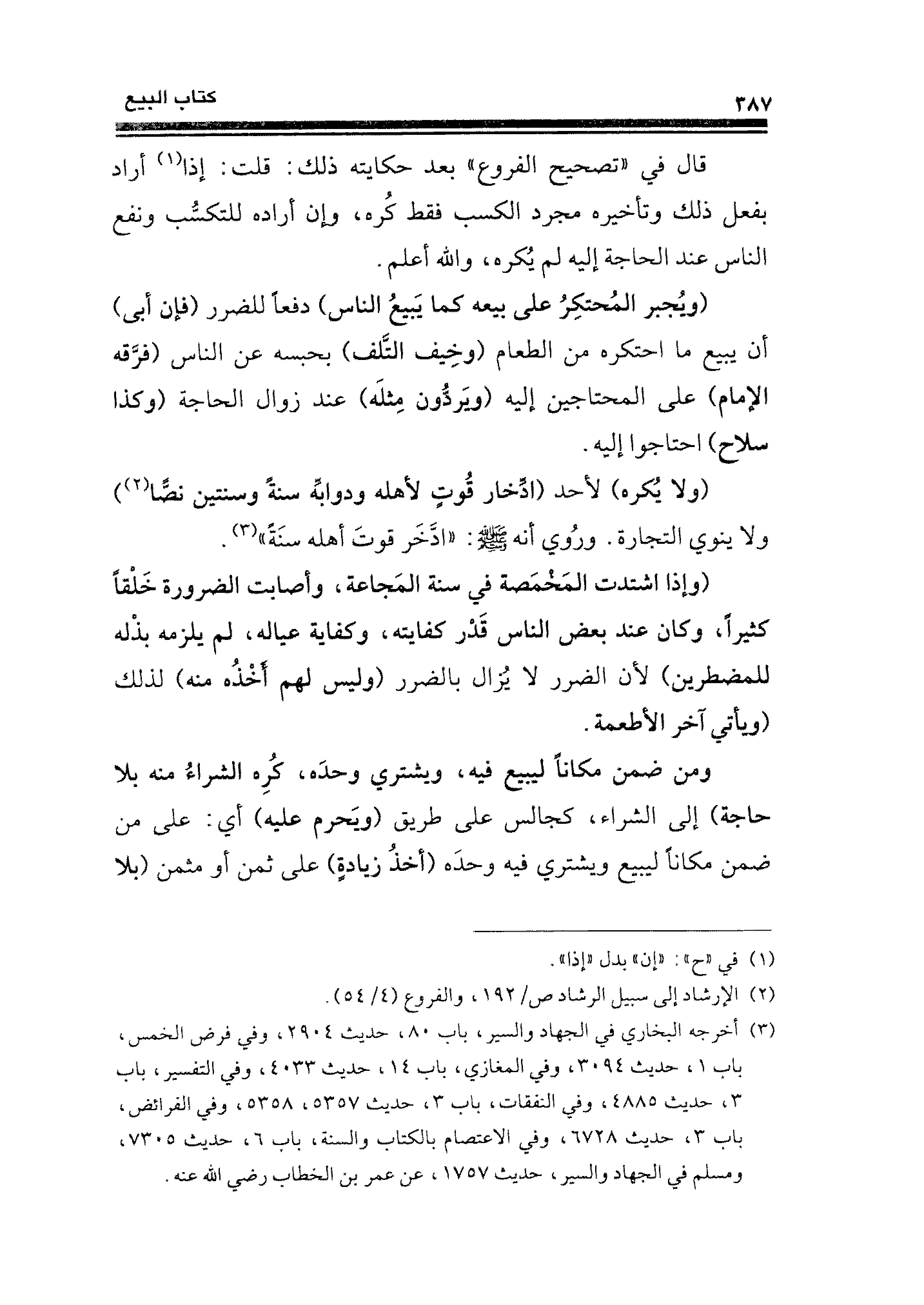 (¬٢) الإرشاد إلى سبيل الرشاد ص / ١٩٢، والفروع (٤/ ٥٤).