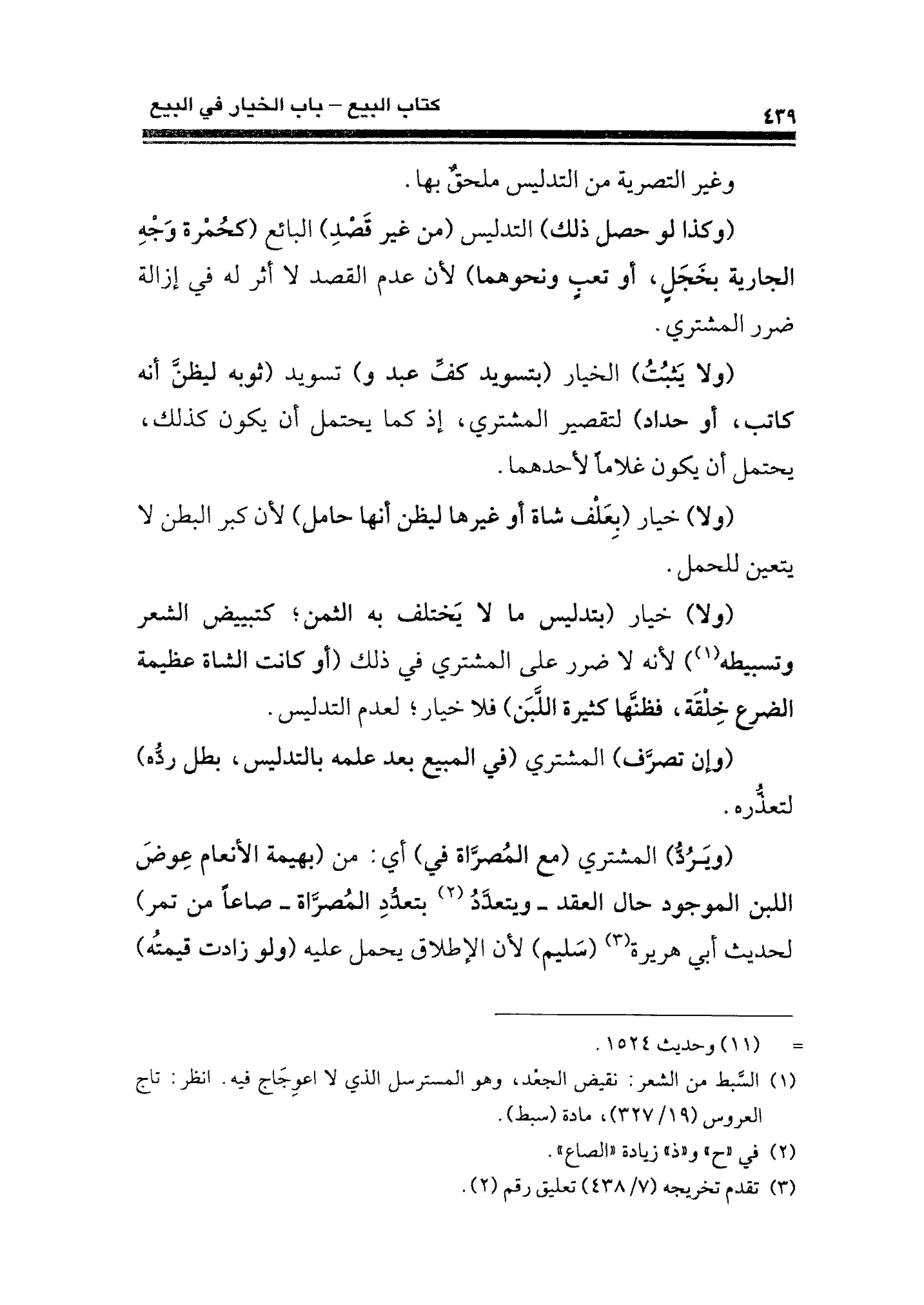 (ولا) خيار (بتدليس ما لا يَختلف به الثمن؛ كتبييض الشعر وتسبيطه (¬١)) لأنه لا ضرر على المشتري في ذلك (أو كانت الشاة عظيمة الضرع خِلْقَة، فظنَّها كثيرة اللَّبَن) فلا خيار؛ لعدم التدليس.