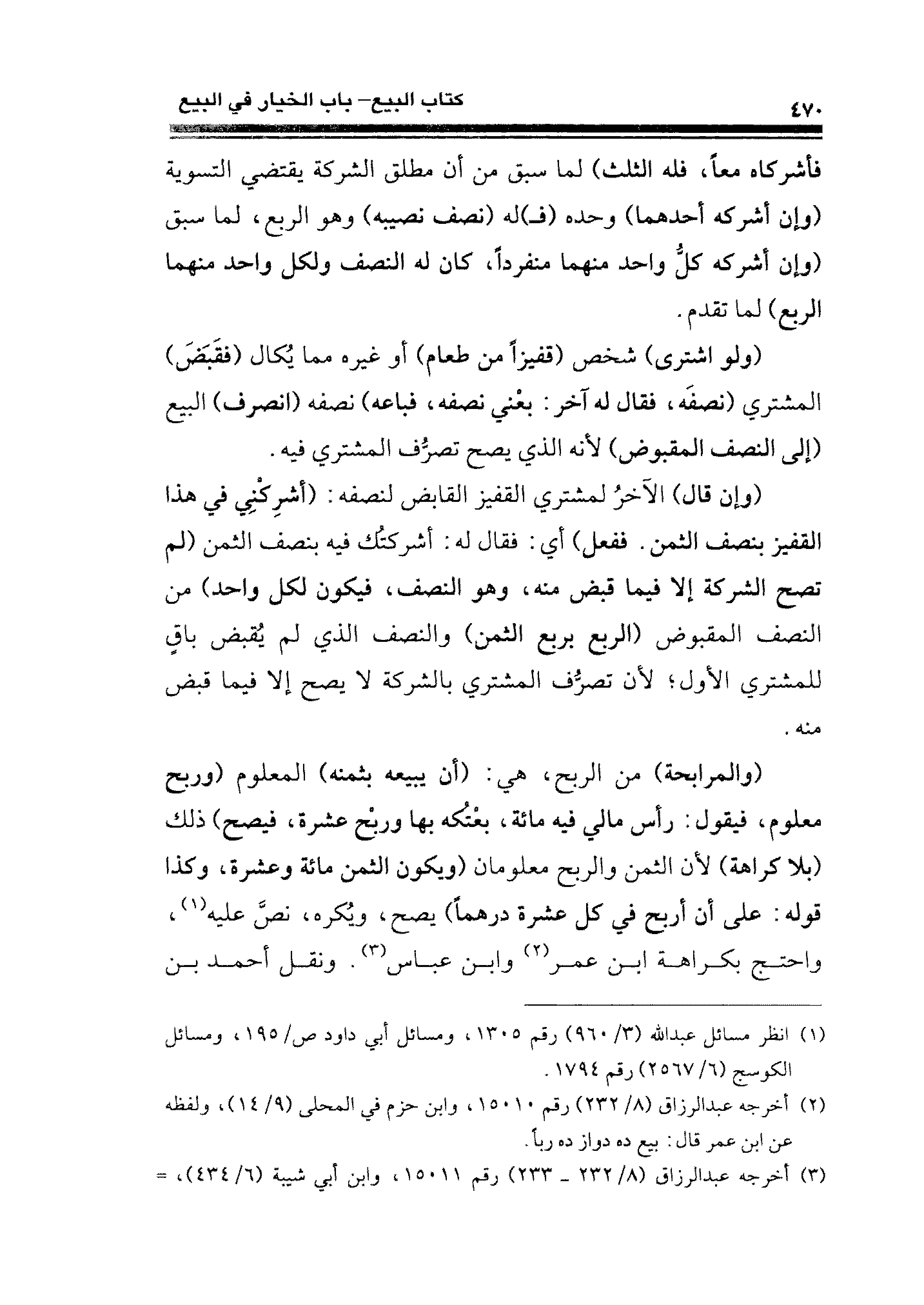 (والمرابحة) من الربح، هي: (أن يبيعه بثمنه) المعلوم (وربح معلوم، فيقول: رأس مالي فيه مائة، بعْتُكه بها وربحْ عشرة، فيصح) ذلك (بلا كراهة) لأن الثمن والربح معلومان (ويكون الثمن مائة وعشرة، وكذا قوله: على أن أربح في كل عشرة درهمًا) يصح، ويُكره، نصَّ عليه (¬١)، واحتج بكراهة ابن عمر (¬٢) وابن عباس (¬٣). ونقل أحمد بن