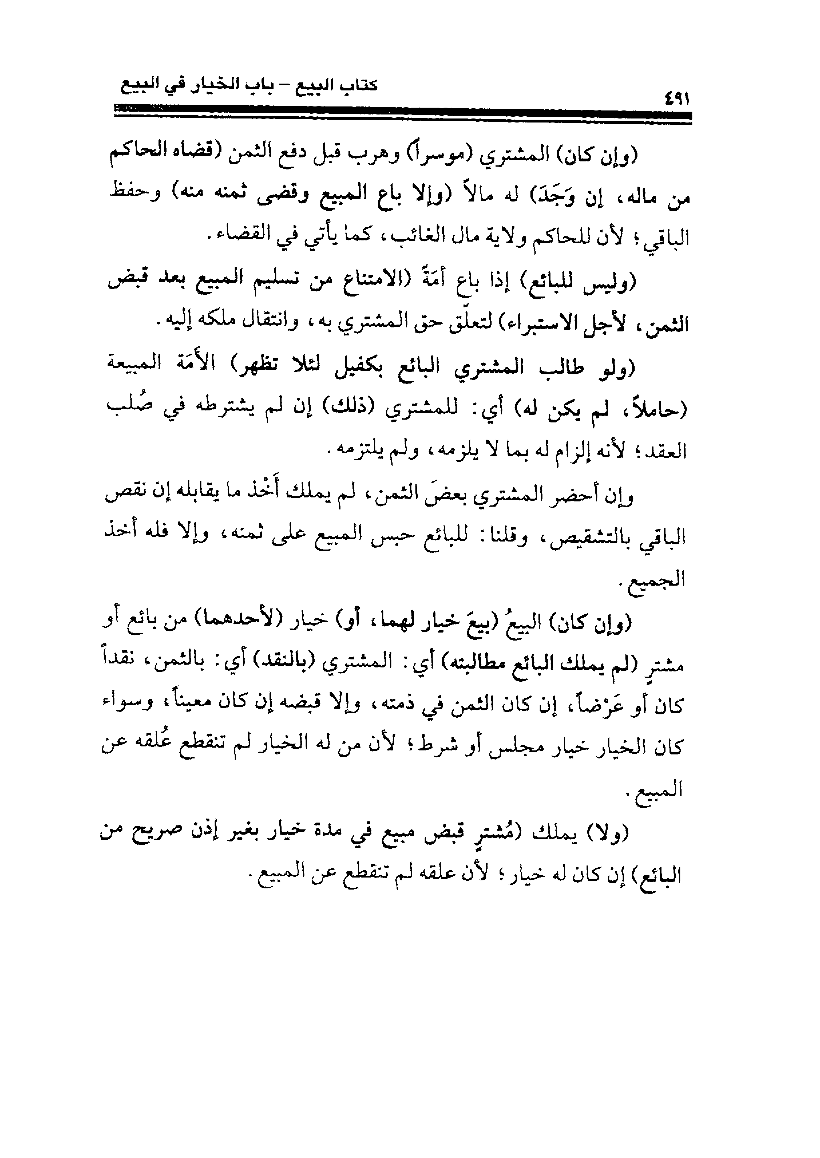 (وإن كان) البيعُ (بيعَ خيار لهما، أو) خيار (لأحدهما) من بائع أو مشترٍ (لم يملك البائع مطالبته) أي: المشتري (بالنقد) أي: بالثمن، نقدًا كان أو عَرضًا، إن كان الثمن في ذمته، وإلا قبضه إن كان معينًا، وسواء كان الخيار خيار مجلس أو شرط؛ لأن من له الخيار لم تنقطع عُلقه عن المبيع.