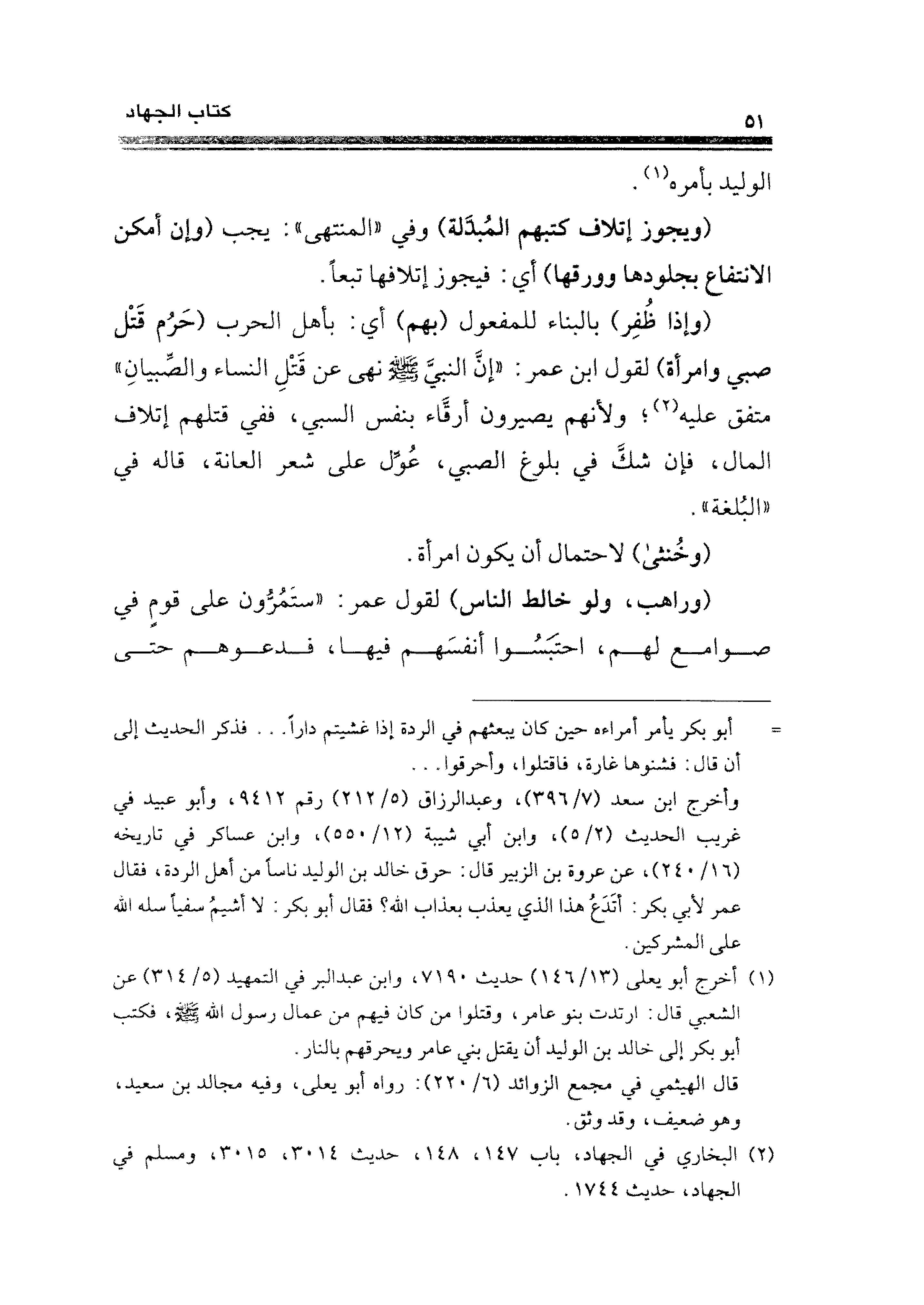 (ويجوز إتلاف كتبهم المُبدَّلة) وفي "المنتهى": يجب (وإن أمكن الانتفاع بجلودها وورقها) أي: فيجوز إتلافها تبعًا.