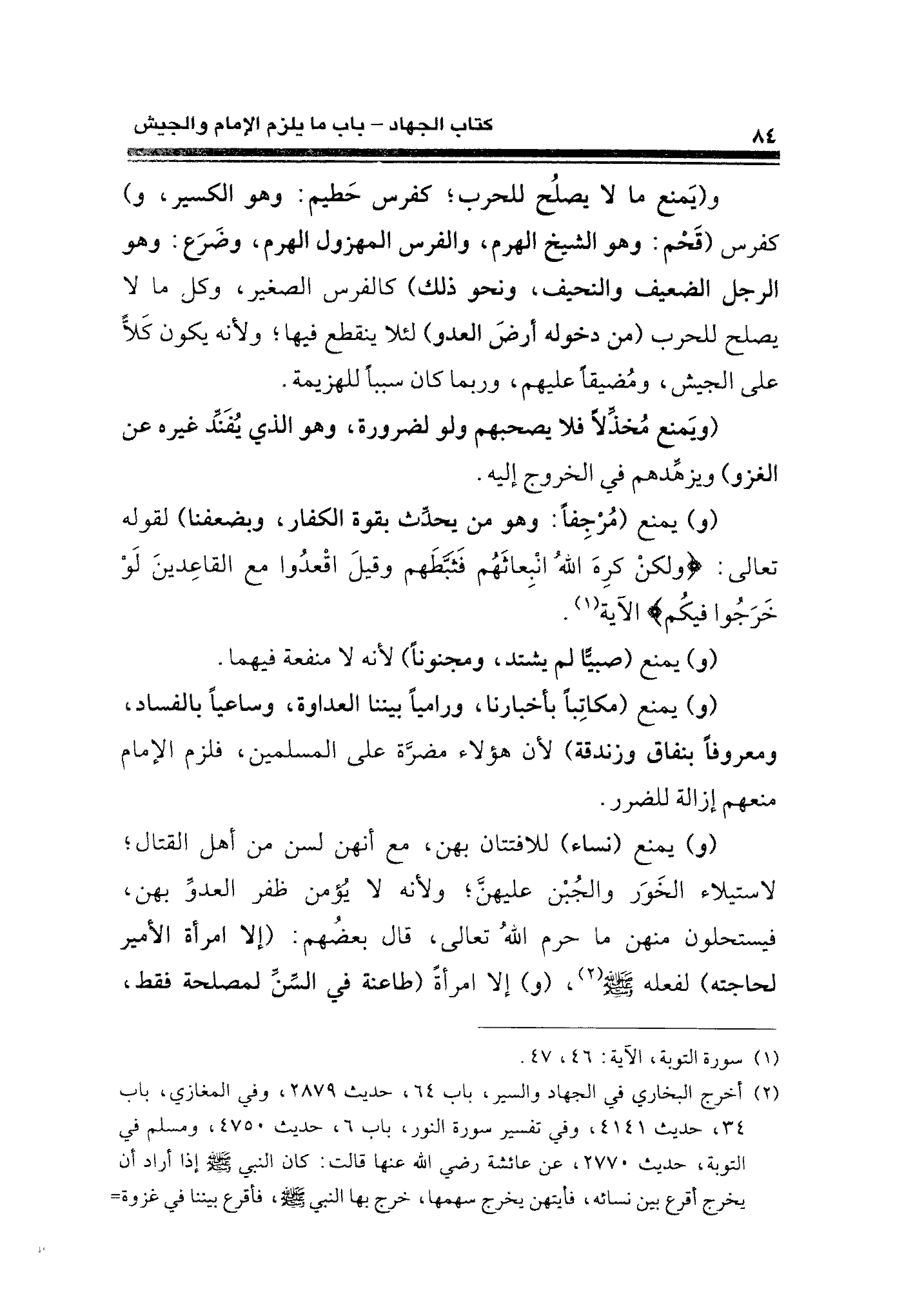 (¬١) سورة التوبة، الآية: ٤٦، ٤٧.