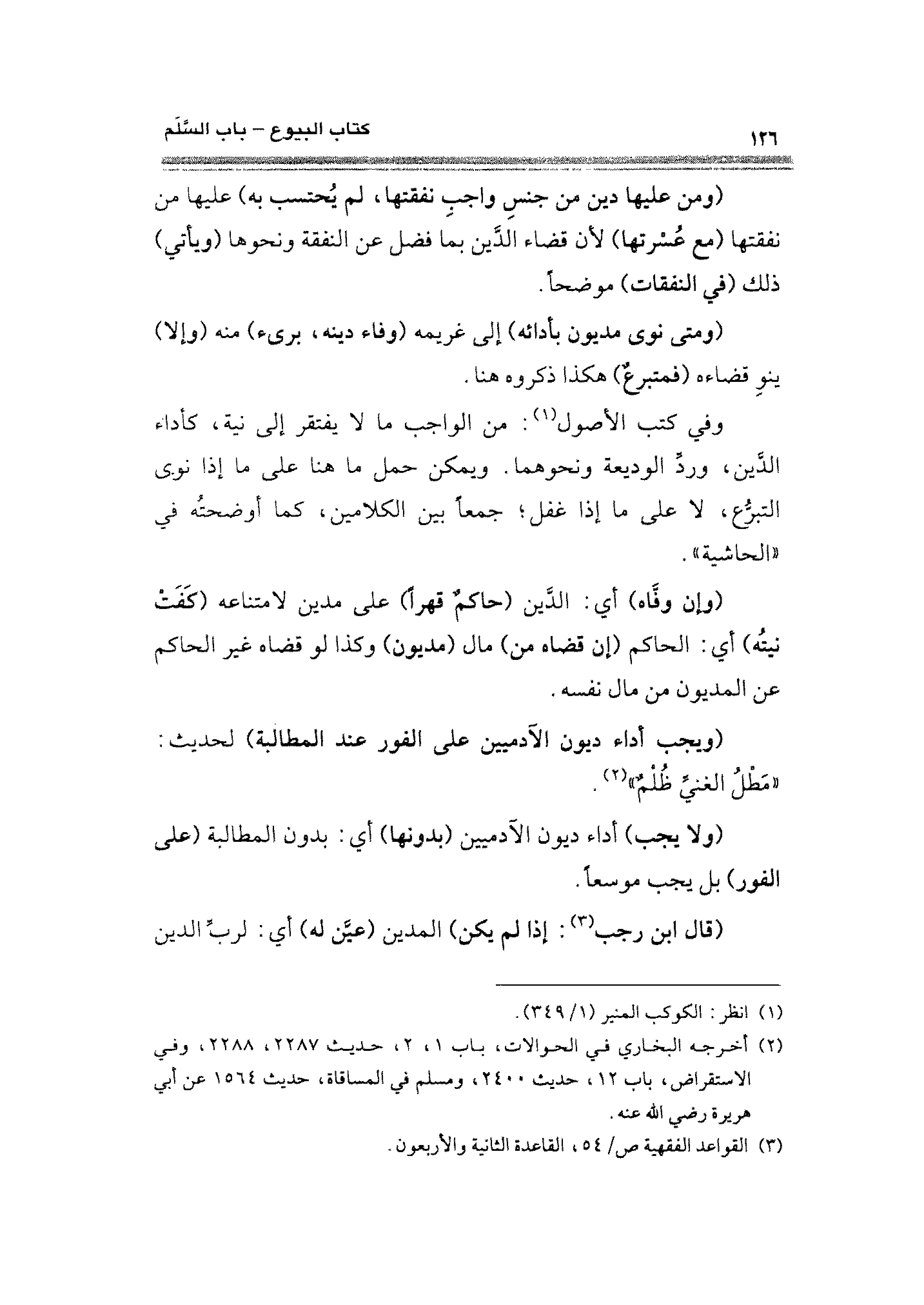 (¬٣) القواعد الفقهية ص/ ٥٤، القاعدة الثانية والأربعون.