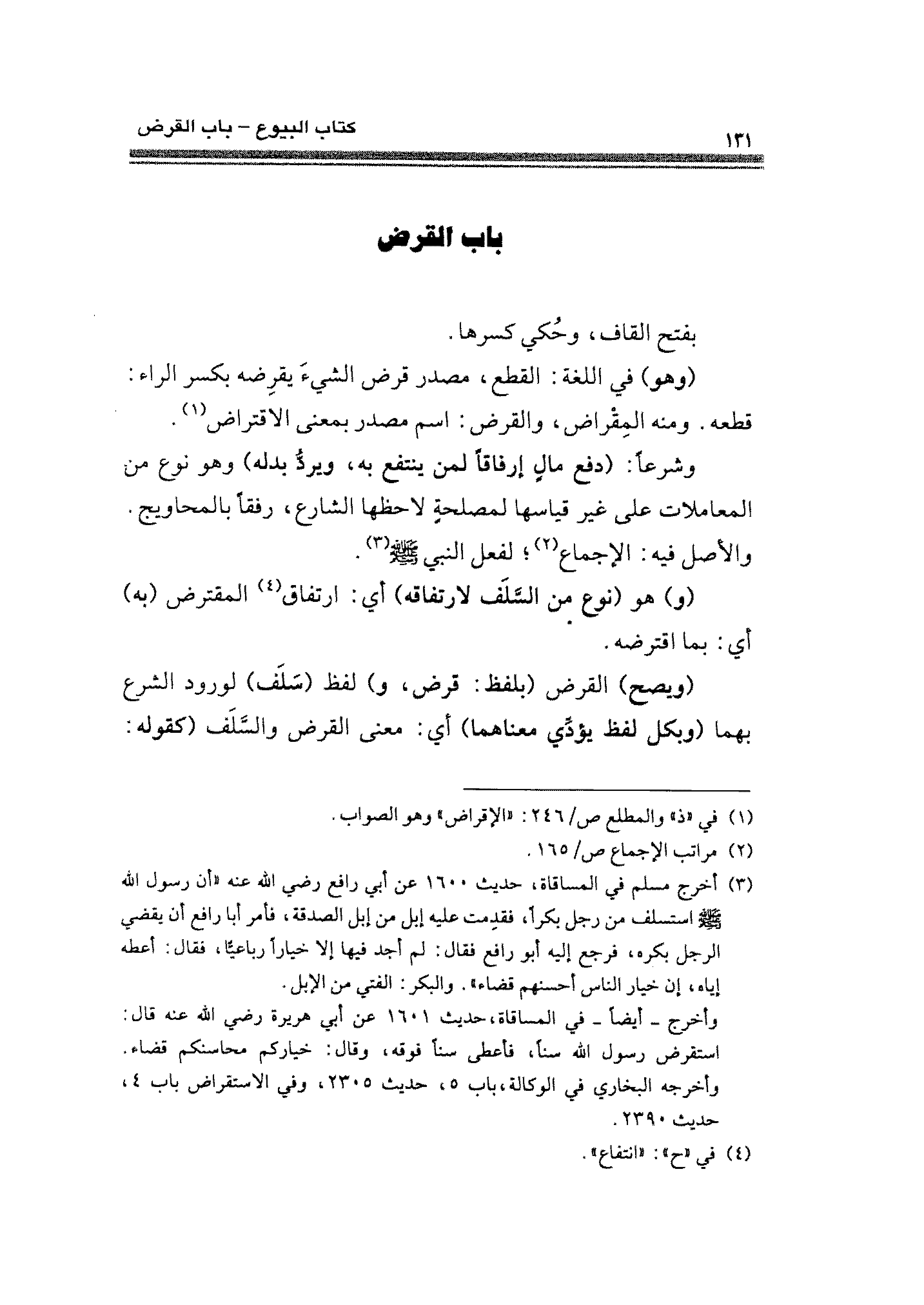 (¬١) في "ذ" والمطلع ص/ ٢٤٦: "الإقراض" وهو الصواب.
