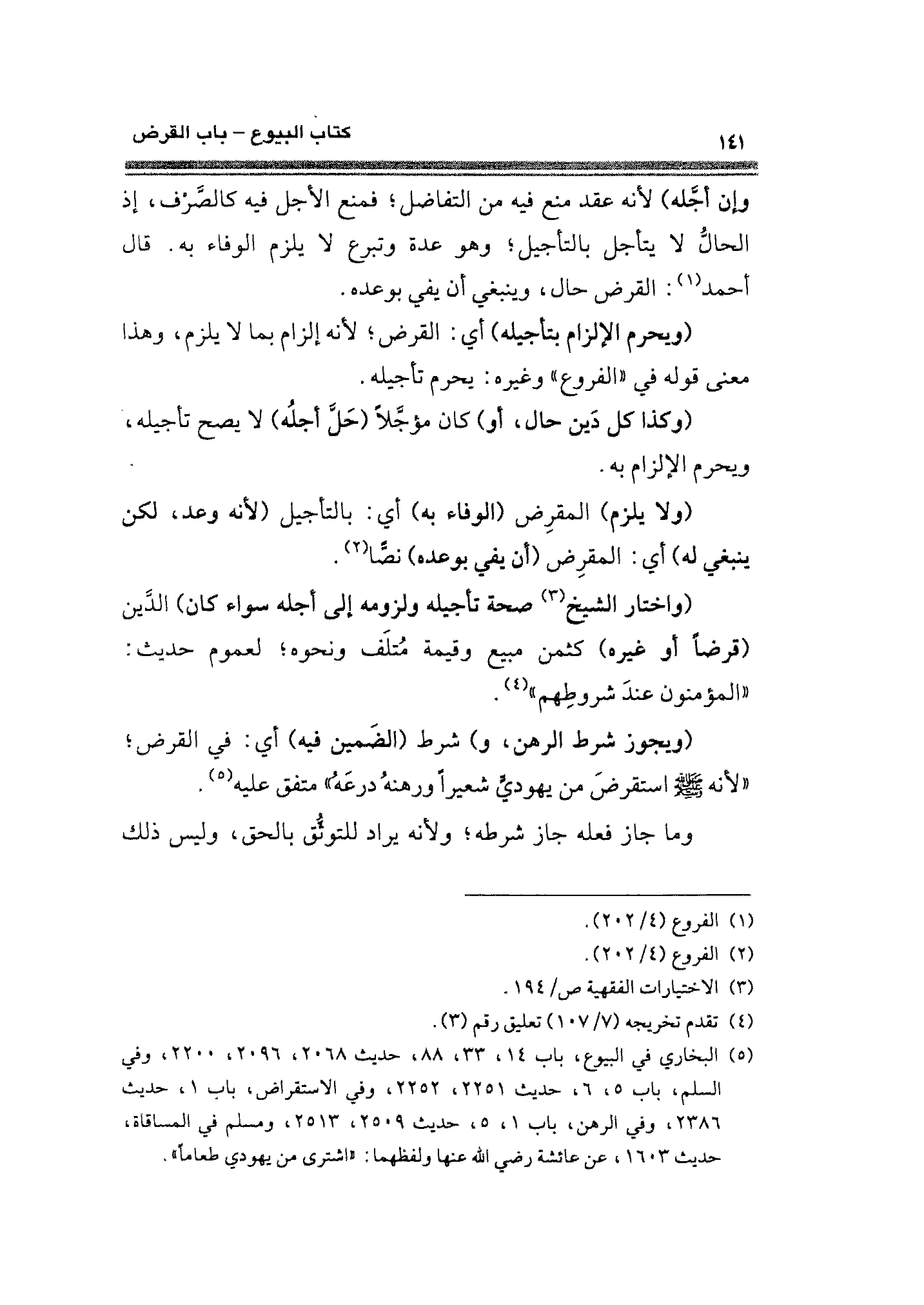 (¬٥) البخاري في البيوع، باب، ٣٣، ١٤، ٨٨ حديث ٢٠٦٨، ٢٠٩٦، ٢٢٠٠، وفي السلم، باب ٥، ٦، حديث ٢٢٥١، ٢٢٥٣، وفي الاستقراض، باب ١، حديث ٢٣٨٦، وفي الرهن، باب ١، ٥، حديث ٢٥١٣، ٢٥٠٩، ومسلم في المساقاة، حديث ١٦٠٣، عن عائشة رضي الله عنها ولفظهما: "اشترى من يهودي طعامًا".