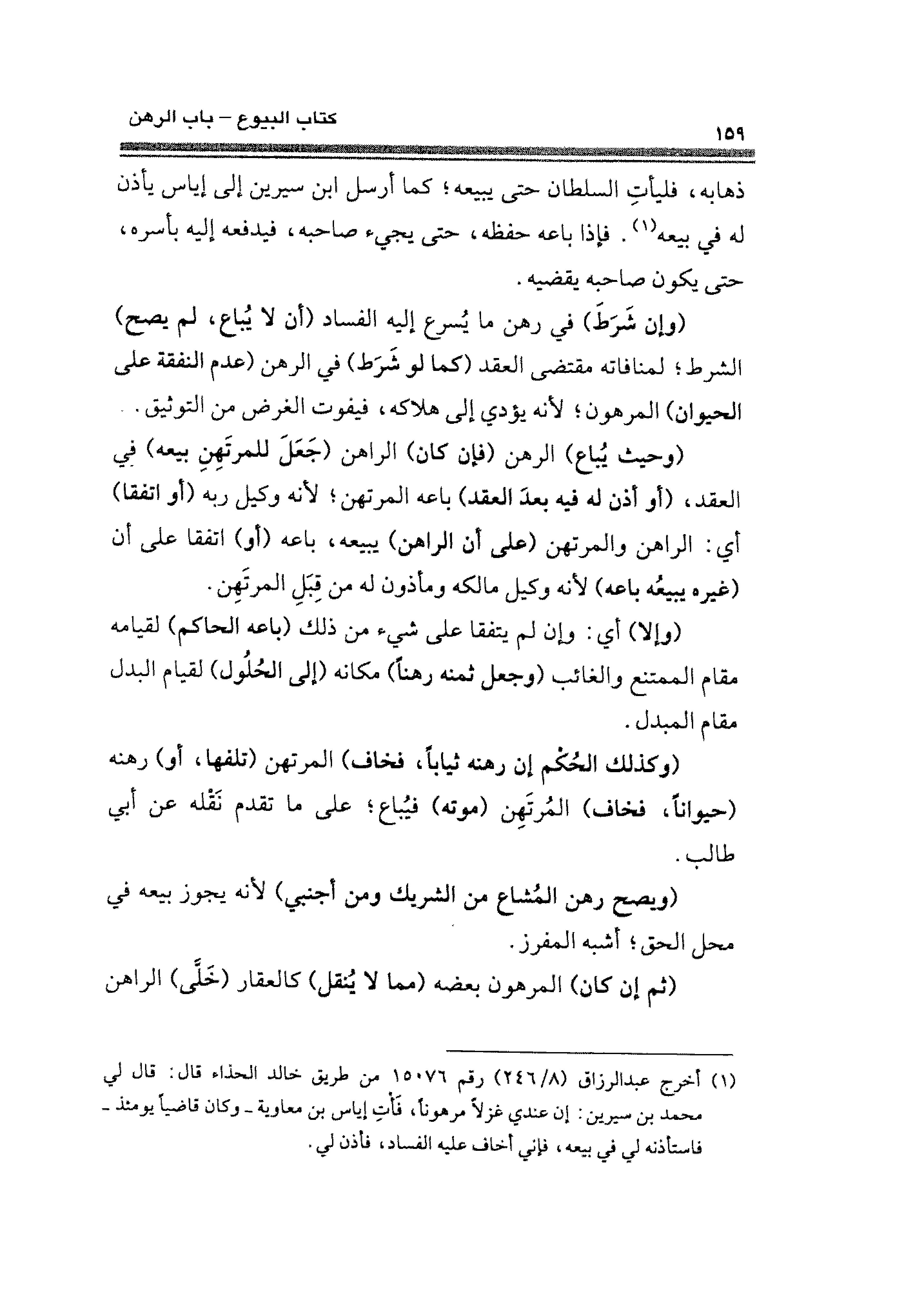 (¬١) أخرج عبد الرزاق (٨/ ٢٤١) رقم ١٥٠٧٦ من طريق خالد الحذاء. قال: قال لي محمد بن سيرين: إن عندي غزلًا مرهونًا، فَأْتِ إياس بن معاوية -وكان قاضيًا يومئذ- فاستأذنه لي في بيعه، فإني أخاف عليه الفساد، فأذن لي.