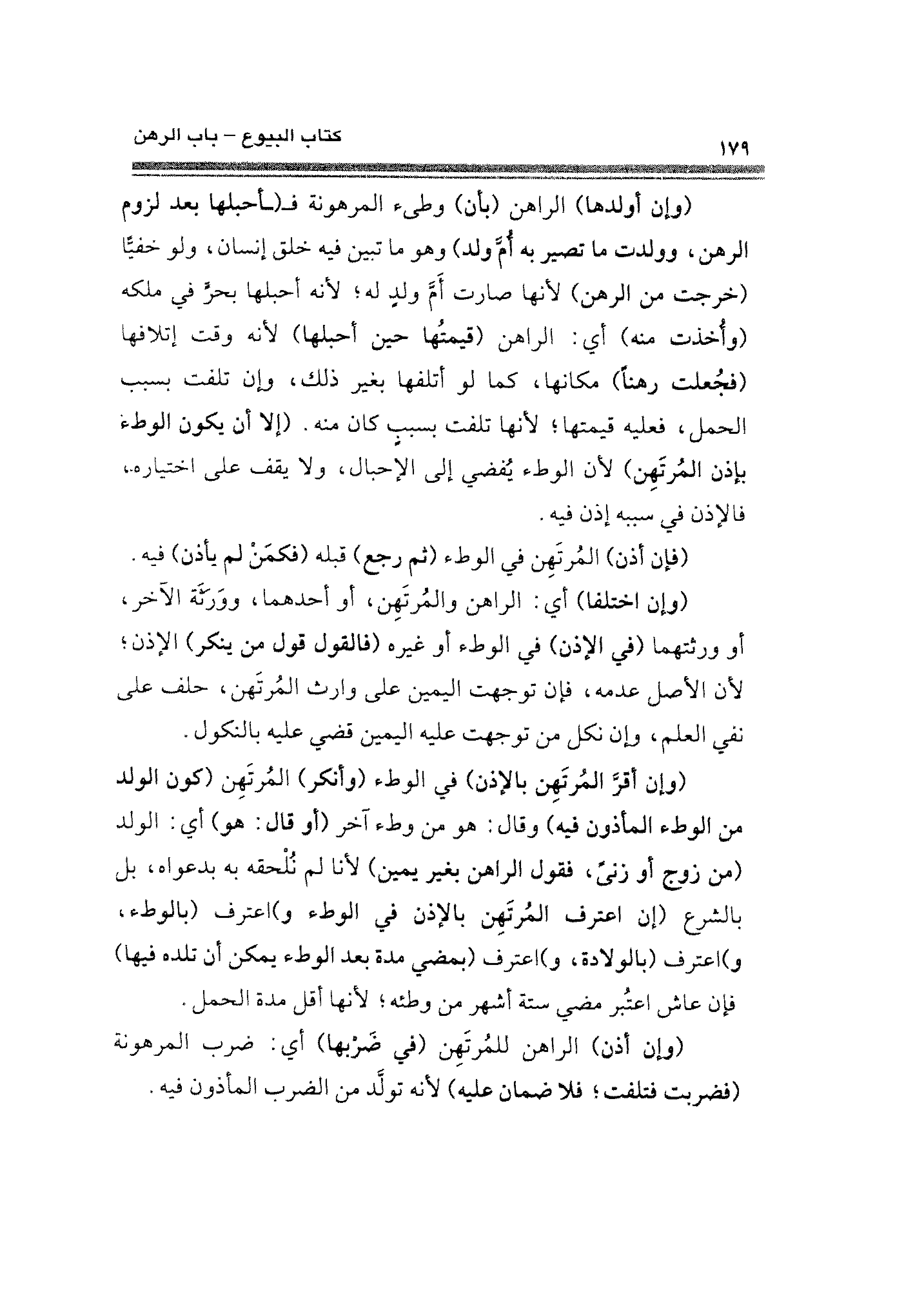 (وإن أقرَّ المُرتَهِن بالإذن) في الوطء (وأنكر) المرتَهِن (كون الولد من الوطء المأذون فيه) وقال: هو من وطء آخر (أو قال: هو) أي: الولد (من زوج أو زنًى، فقول الراهن بغير يمين) لأنا لم نُلحقه به بدعواه، بل بالشرع (إن اعترف المُرتَهِن بالإذن في الوطء و) اعترف (بالوطء، و) اعترف (بالولادة، و) اعترف (بمضي عدة بعد الوطء يمكن أن تلده فيها) فإن عاش اعتُبر مضي ستة أشهر من وطئه؛ لأنها أقل مدة الحمل.