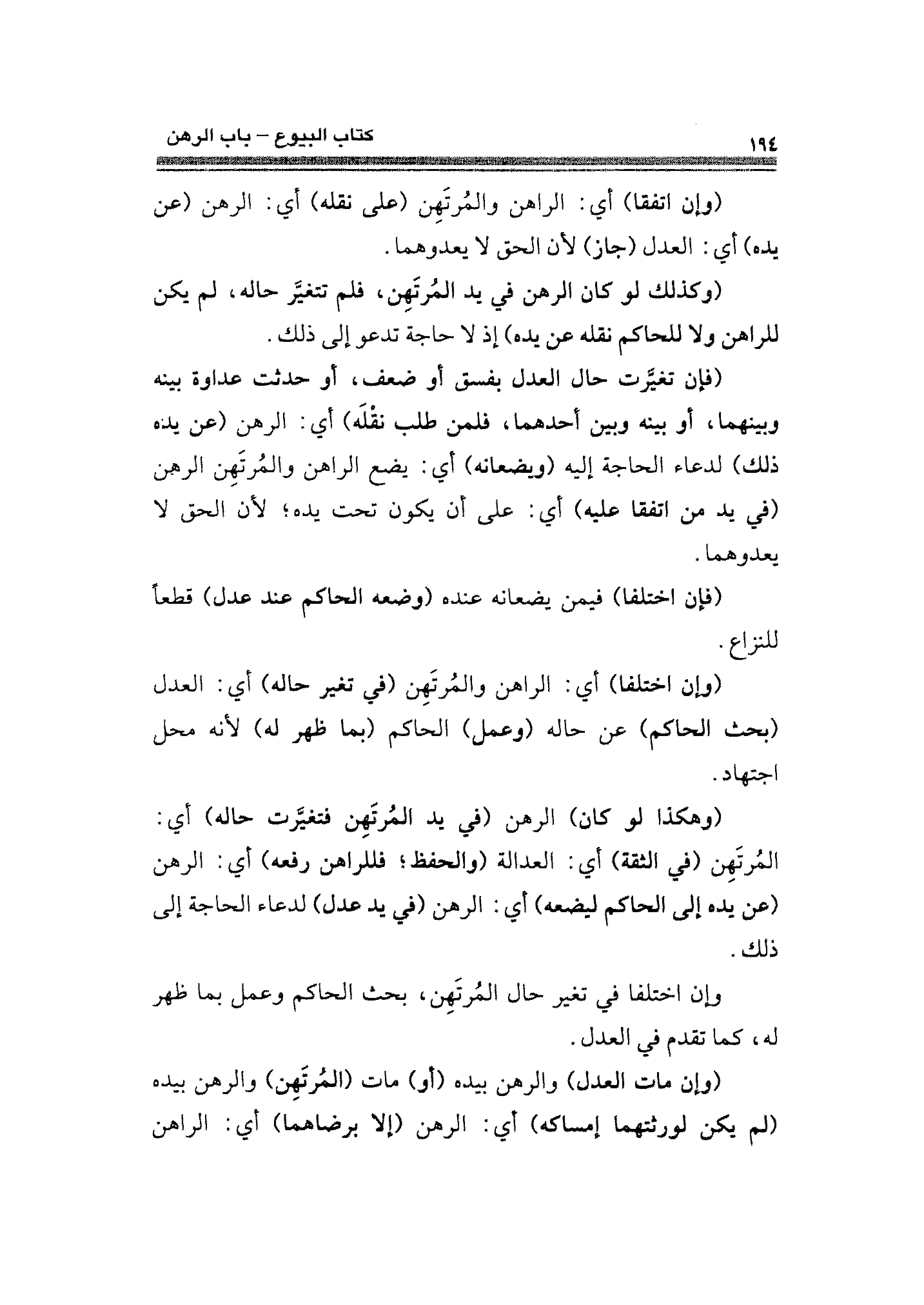 (وهكذا لو كان) الرهن (في يد المُرتَهِن فتغيَّرت حاله) أي: المُرتَهِن (في الثقة) أي: العدالة (والحفظ؛ فللراهن رفعه) أي: الرهن (عن يده إلى الحاكم ليضعه) أي: الرهن (في يد عدل) لدعاء الحاجة إلى ذلك.