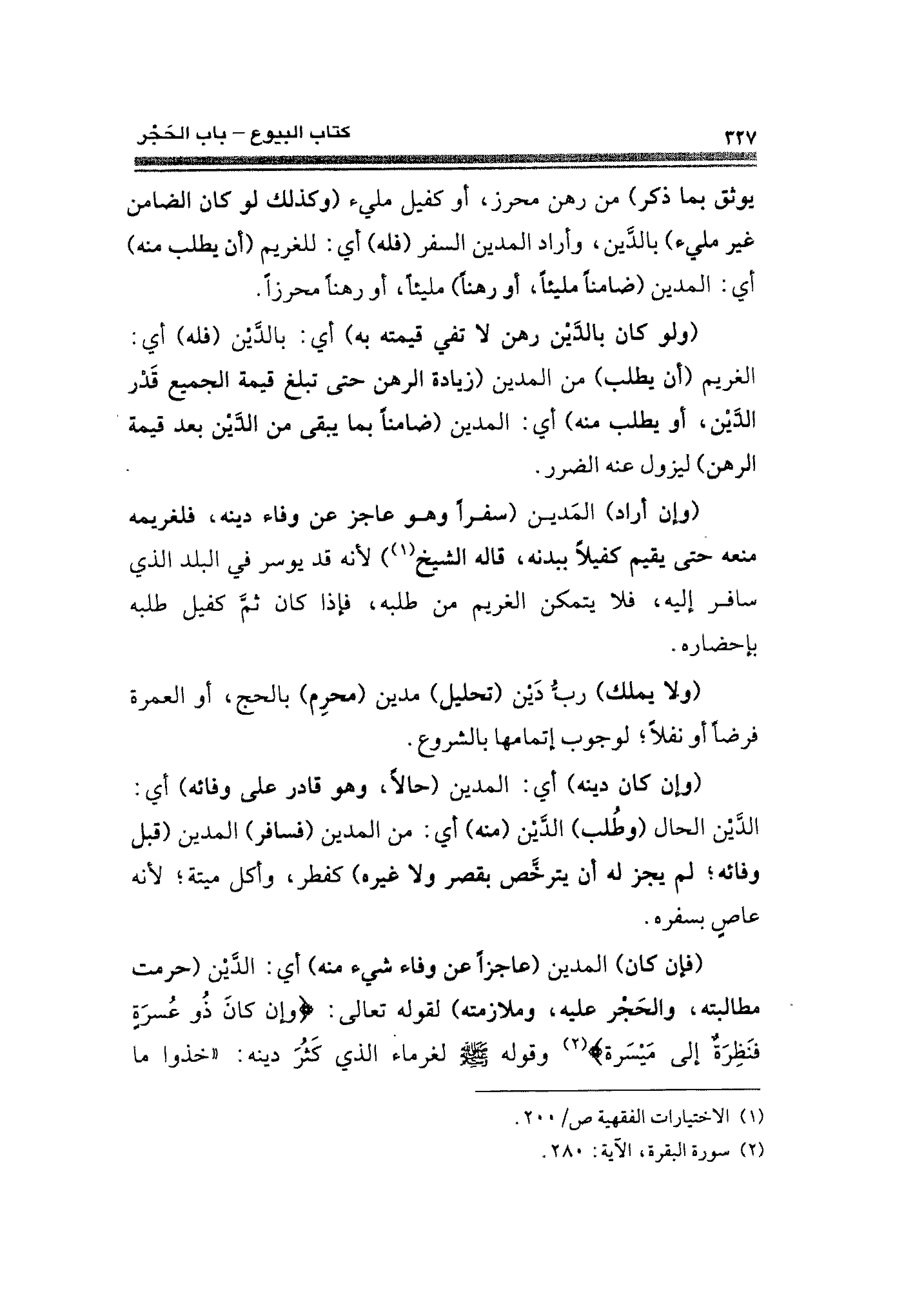 (¬١) الاختيارات الفقهية ص / ٢٠٠.