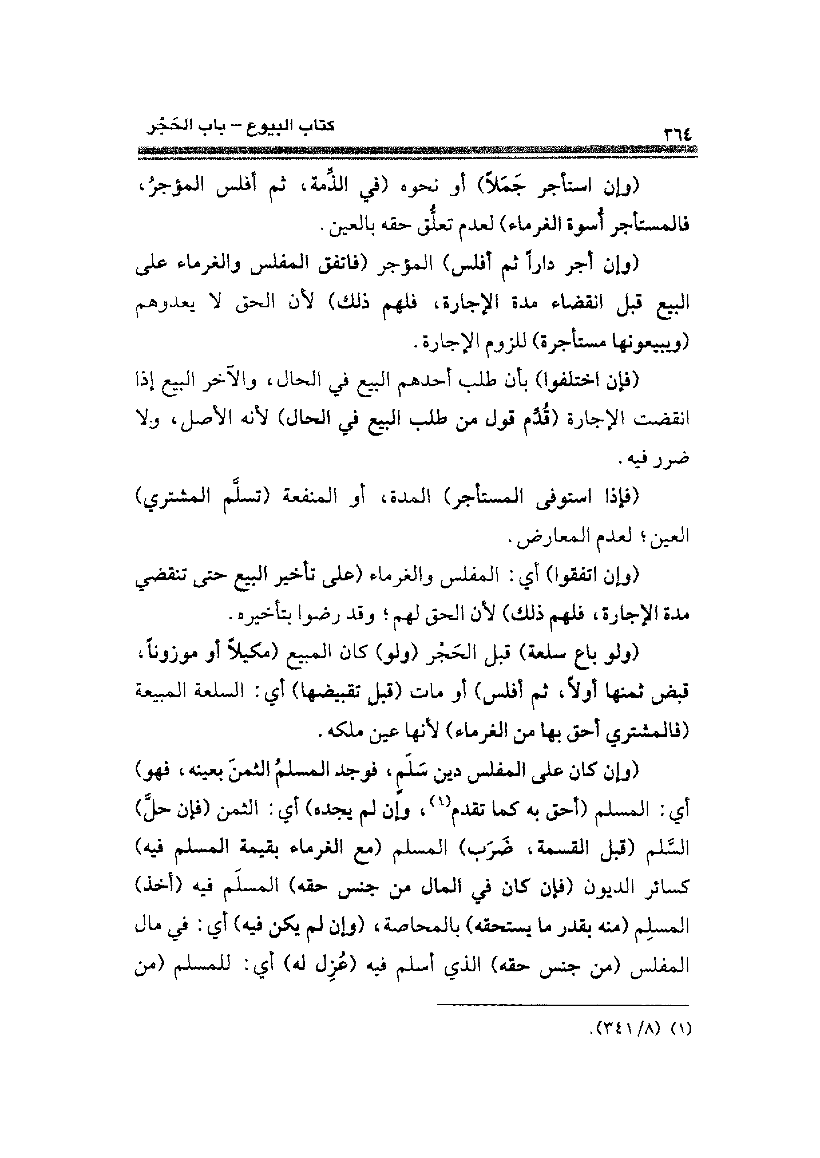 (وإن أجر دارًا ثم أفلس) المؤجر (فاتفق المفلس والغرماء على البيع قبل انقضاء مدة الإجارة، فلهم ذلك) لأن الحق لا يعدوهم (ويبيعونها مستأجرة) للزوم الإجارة.