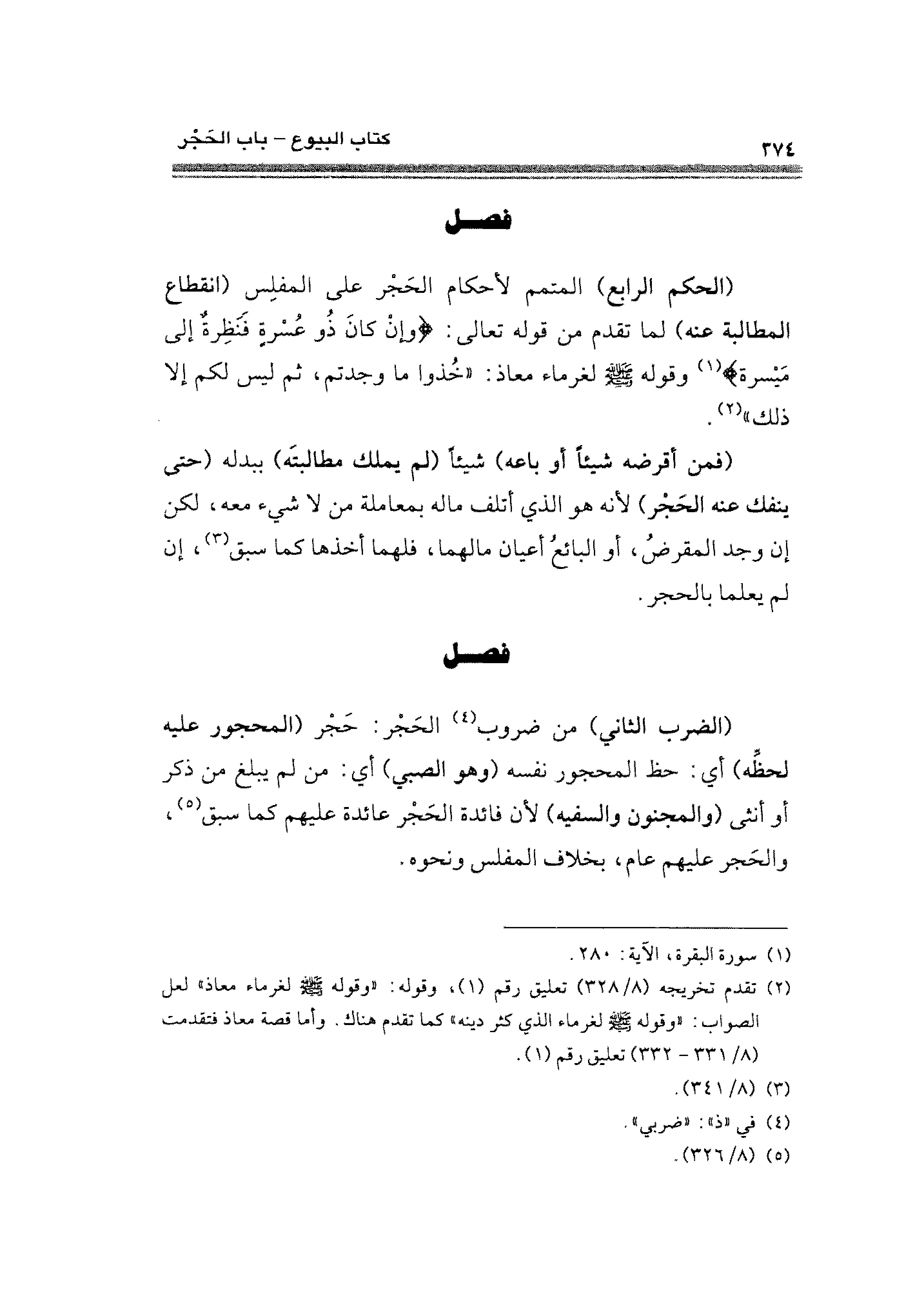 (¬٢) تقدم تخريجه (٨/ ٣٢٨) تعليق رقم (١)، وقوله: "وقوله - صلى الله عليه وسلم - لغرماء معاذ" لعل الصواب: "وقوله - صلى الله عليه وسلم - لغرماء الذي كثر دينه" كما تقدم هناك. وأما قصة معاذ فتقدمت (٨/ ٣٣١ - ٣٣٢) تعليق رقم (١).