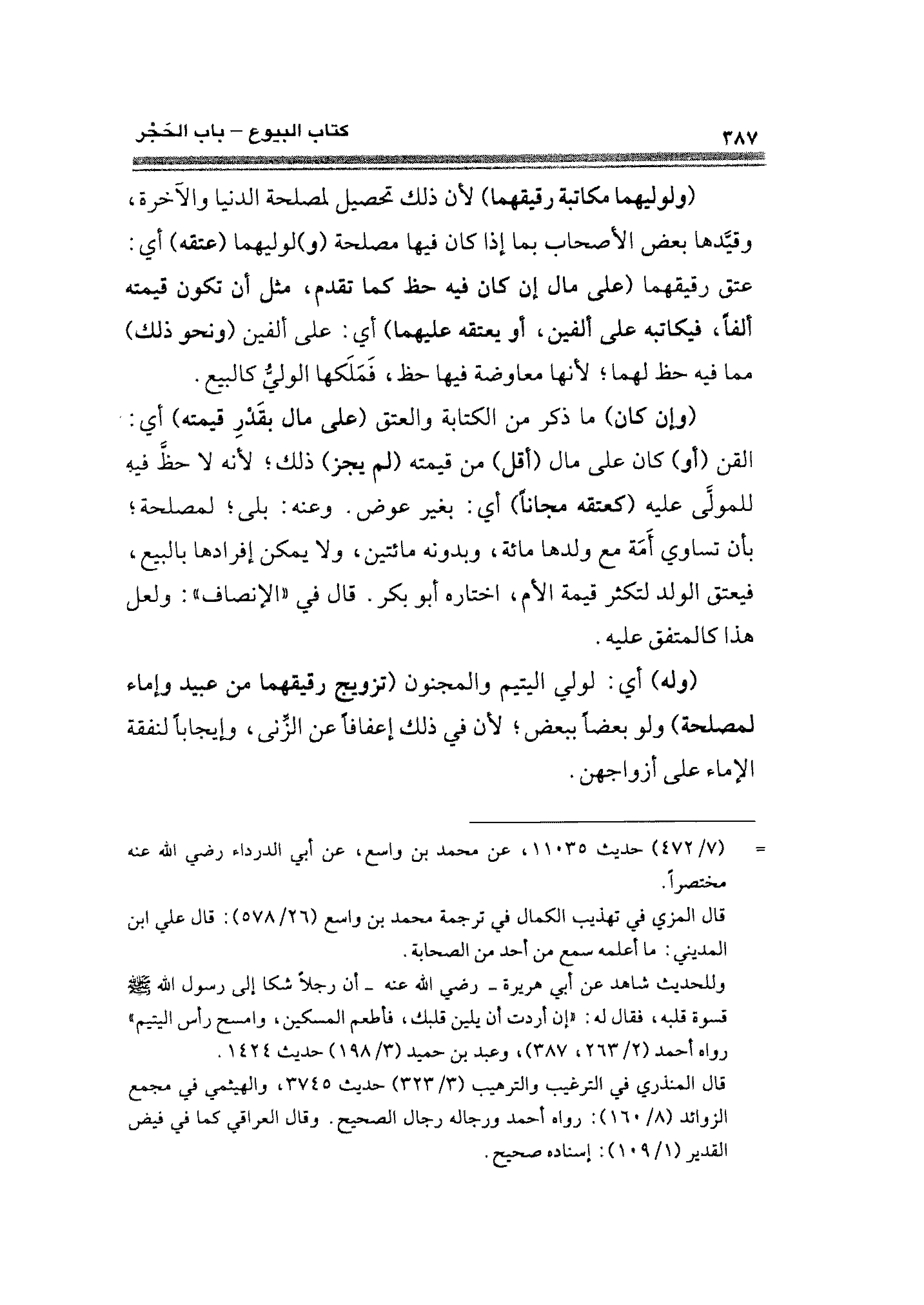 (ولوليهما مكاتبة رقيقهما) لأن ذلك تحصيل لمصلحة الدنيا والآخرة، وقيَّدها بعض الأصحاب بما إذا كان فيها مصلحة (و) لوليهما (عتقه) أي: عتق رقيقهما (على مال إن كان فيه حظ كما تقدم، مثل أن تكون قيمته ألفًا، فيكاتبه على ألفين، أو يعتقه عليهما) أي: على ألفين (ونحو ذلك) مما فيه حظ لهما؛ لأنها معاوضه فيها حظ، فَمَلَكها الوليُّ كالبيع.