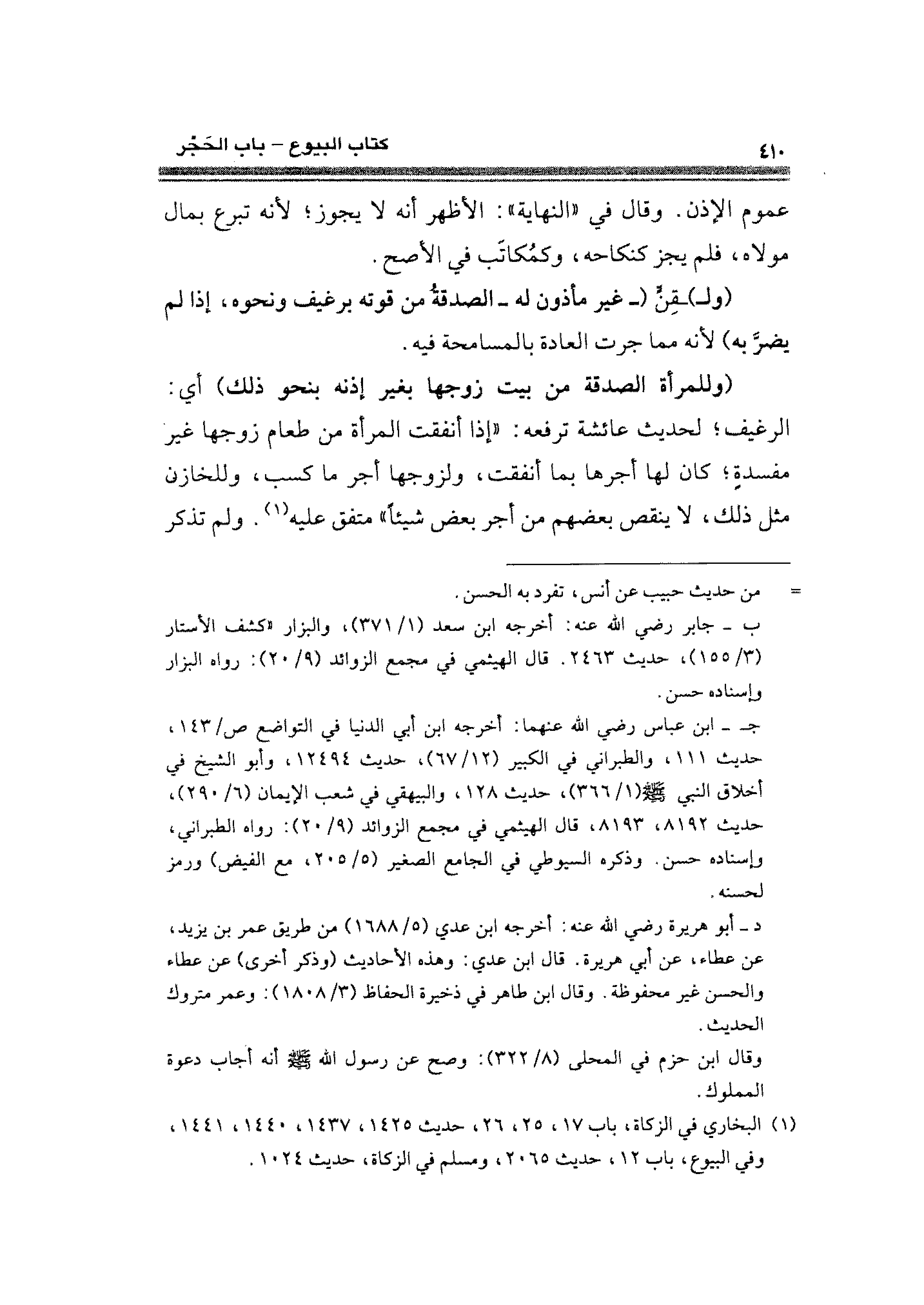(¬١) البخاري في الزكاة، باب ١٧، ٢٥، ٢٦، حديث ١٤٢٥، ١٤٣٧، ١٤٤٠، ١٤٤١ وفي البيوع، باب ١٢، حديث ٢٠٦٥، ومسلم في الزكاة، حديث ١٠٢٤.
