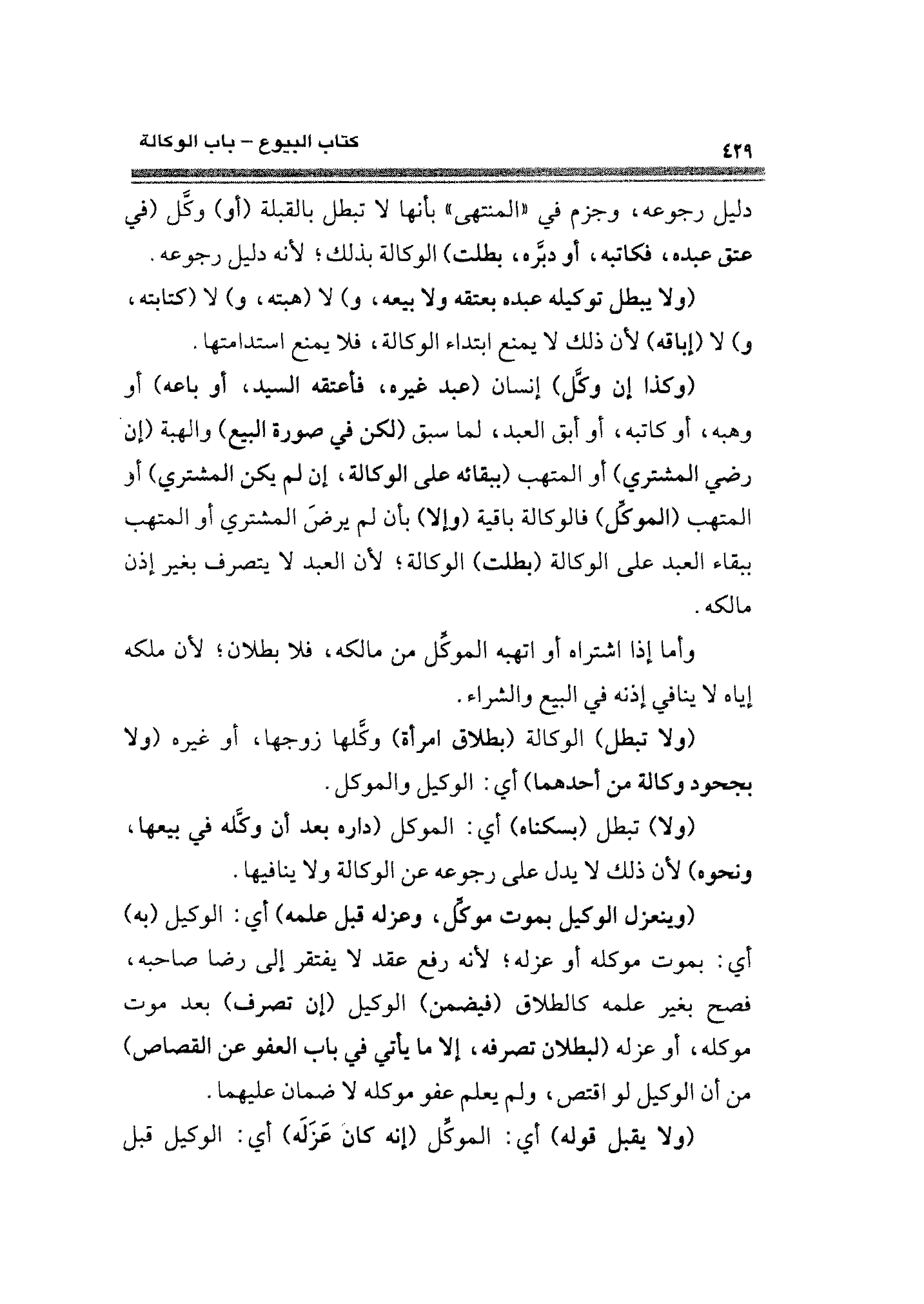 دليل رجوعه، وجزم في "المنتهى" بأنها لا تبطل بالقبلة (أو) وكَّل (في عتق عبده، فكاتبه، أو دبَّره، بطلت) الوكالة بذلك؛ لأنه دليل رجوعه.