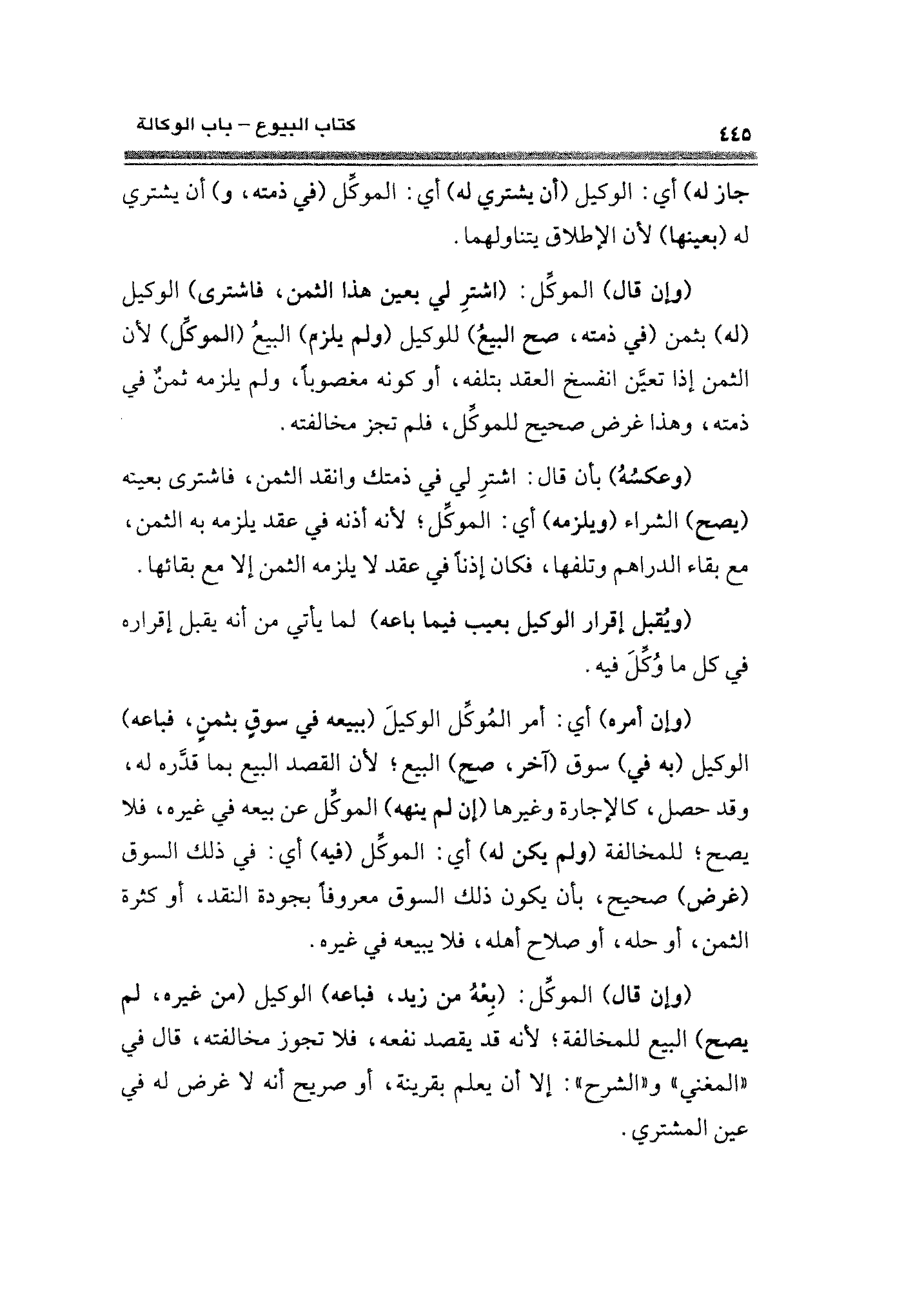 (وإن قال) الموكِّل: (بِعْهُ من زيد، فباعه) الوكيل (من غيره، لم يصح) البيع للمخالفة؛ لأنّه قد يقصد نفعه، فلا تجوز مخالفته، قال في "المغني" و "الشرح": إلا أن يعلم بقرينة، أو صريح أنه لا غرض له في عين المشتري.