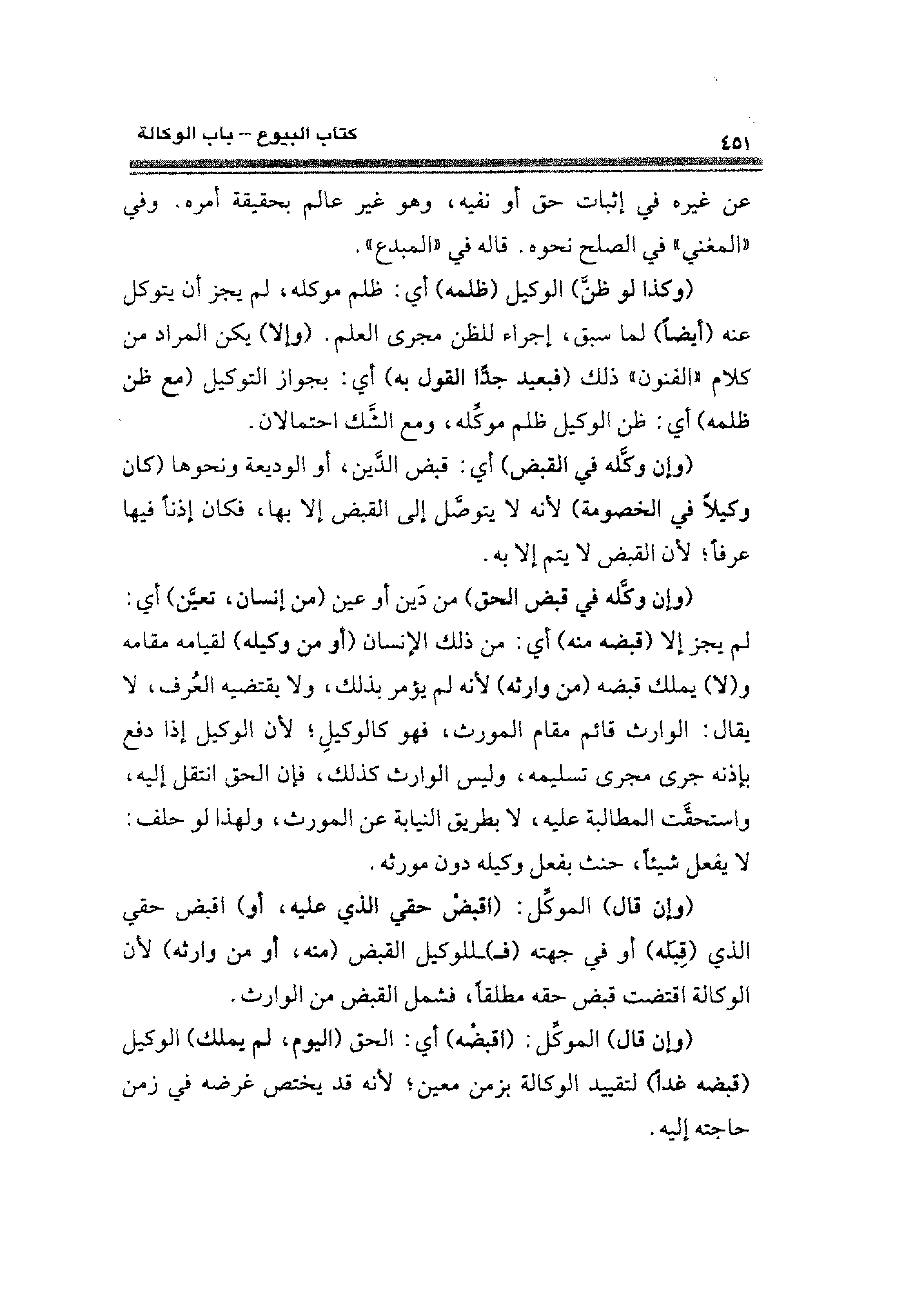 (وإن وكَّله في القبض) أي: قبض الدين، أو الوديعة ونحوها (كان وكيلًا في الخصومة) لأنه لا يتوصل إلى القبض إلا بها، فكان إذنًا فيها عرفًا؛ لأن القبض لا يتم إلا به.