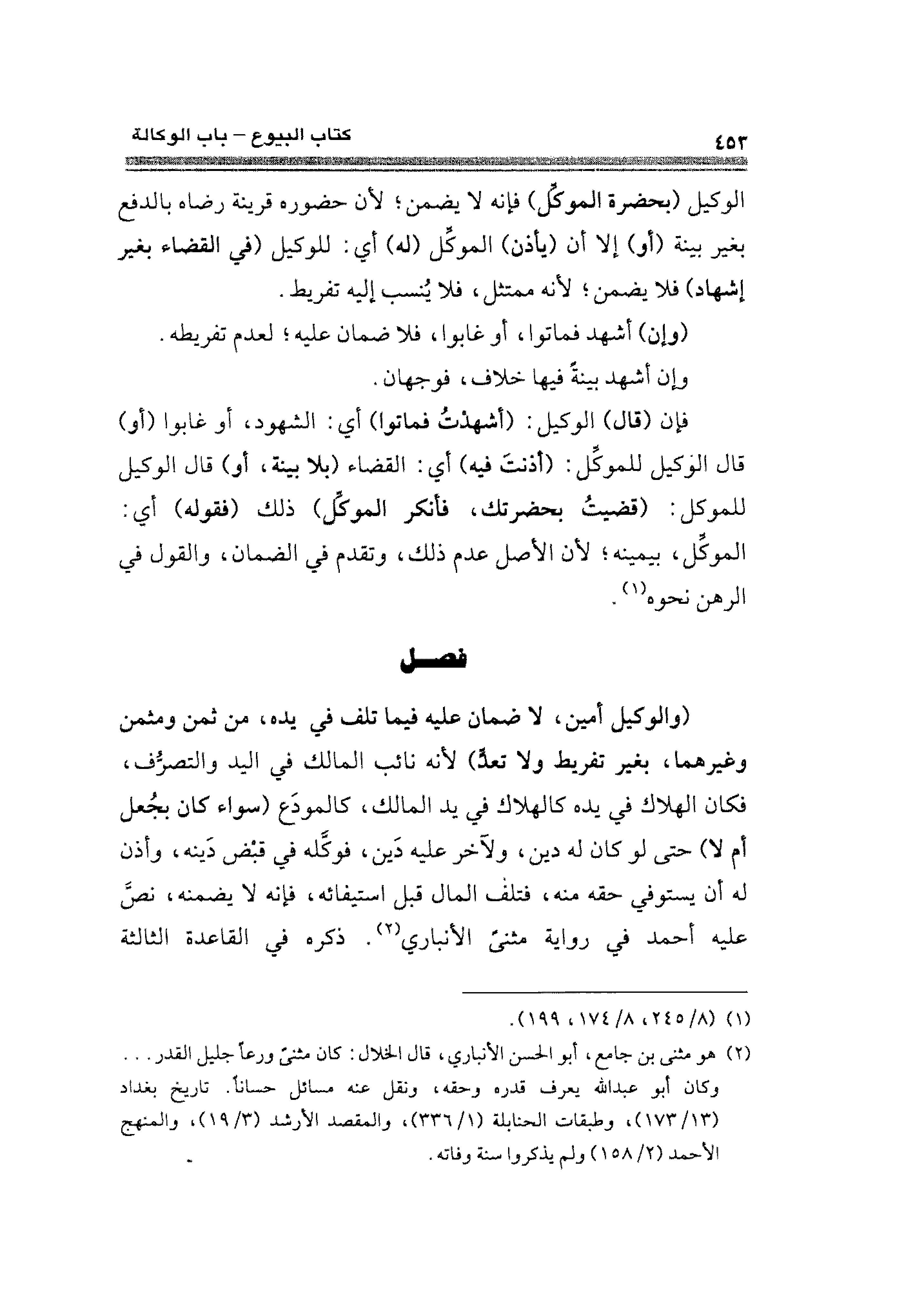 (¬٢) هو مثنى بن جامع، أبو الحسن الأنباري، قال الخلال: كان مثنى ورعًا جليل القدر ... وكان أبو عبد الله يعرف قدره وحقه، ونقل عنه مسائل حسانًا. تاريخ بغداد (١٣/ ١٧٣)، وطبقات الحنابلة (١/ ٣٣٦)، والمقصد الأرشد (٣/ ١٩)، والمنهج الأحمد (٢/ ١٥٨) ولم يذكروا سنة وفاته.