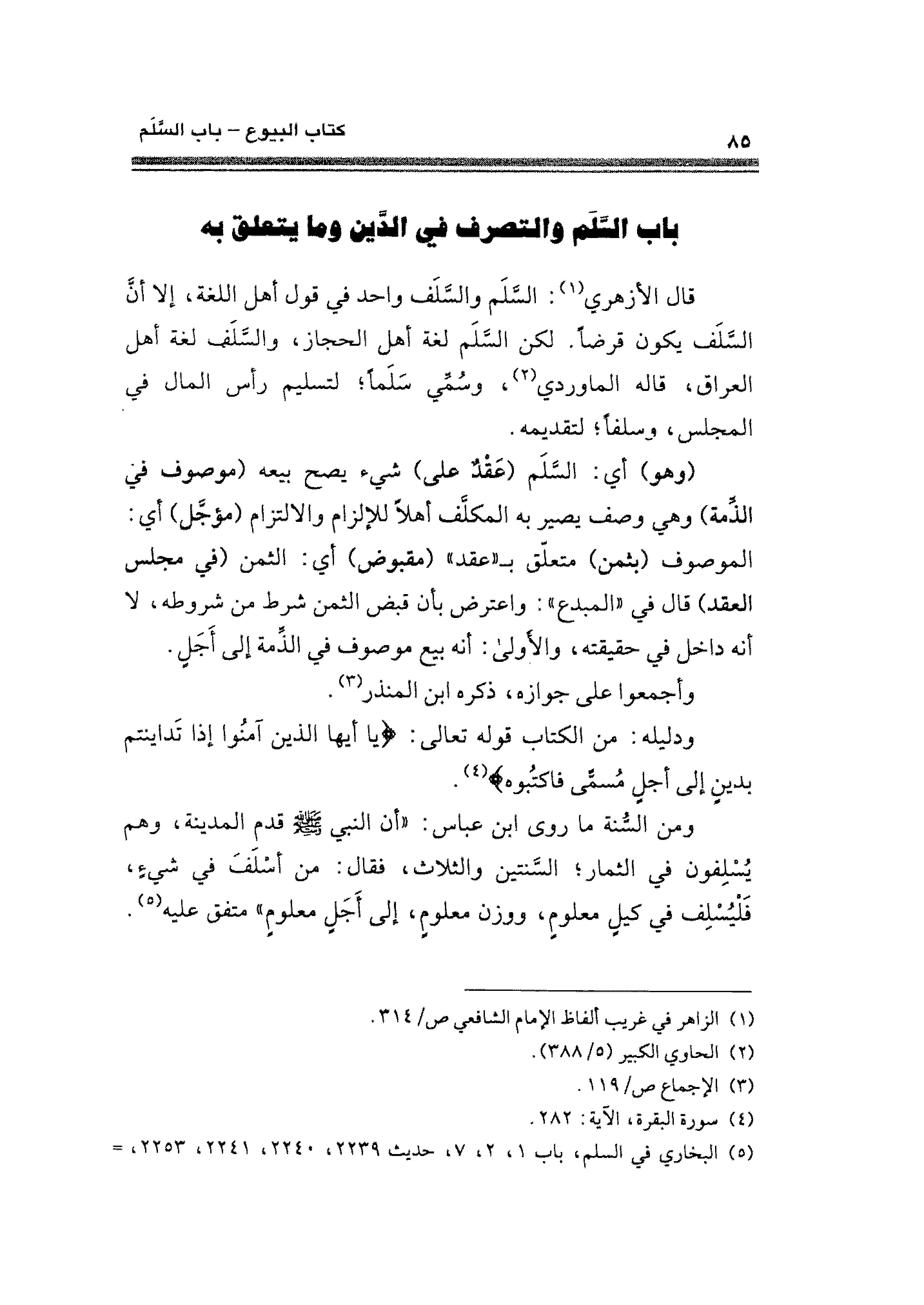 باب السَّلَم والتصرف في الدِّين وما يتعلق به