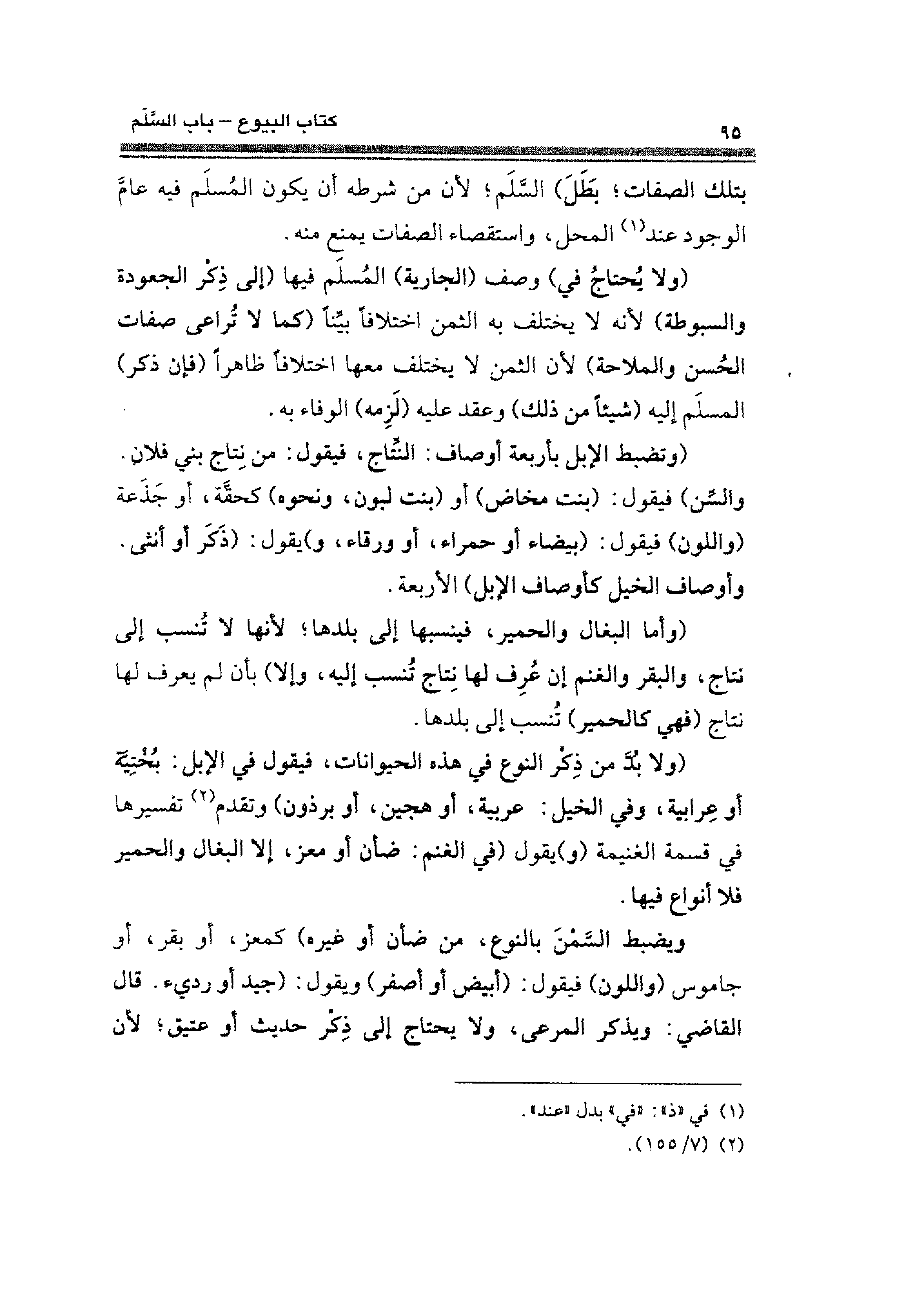 بتلك الصفات؛ بَطَلَ) السَّلَم؛ لأن من شرطه أن يكون المُسلَم فيه عامَّ الوجود عند (¬١) المحل، واستقصاء الصفات يمنع منه.
