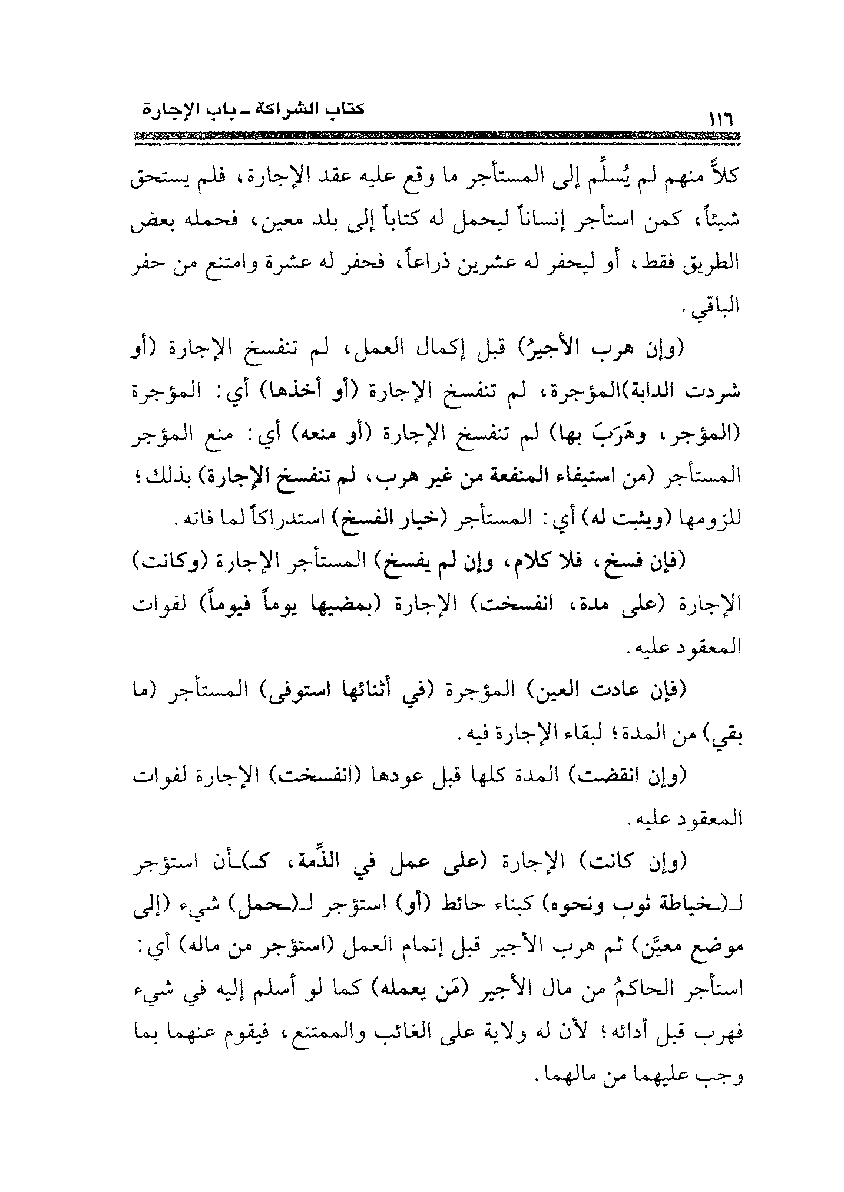 (وإن هرب الأجيرُ) قبل إكمال العمل، لم تنفسخ الإجارة (أو شردت الدابة) المؤجرة، لم تنفسخ الإجارة (أو أخذها). أي: المؤجرة (المؤجر، وهَرَبَ بها) لم تنفسخ الإجارة (أو منعه) أي: منع المؤجر المستأجر (من استيفاء المنفعة من غير هرب، لم تنفسخ الإجارة) بذلك؛ للزومها (ويثبت له) أي: المستأجر (خيار الفسخ) استدراكًا لما فاته.