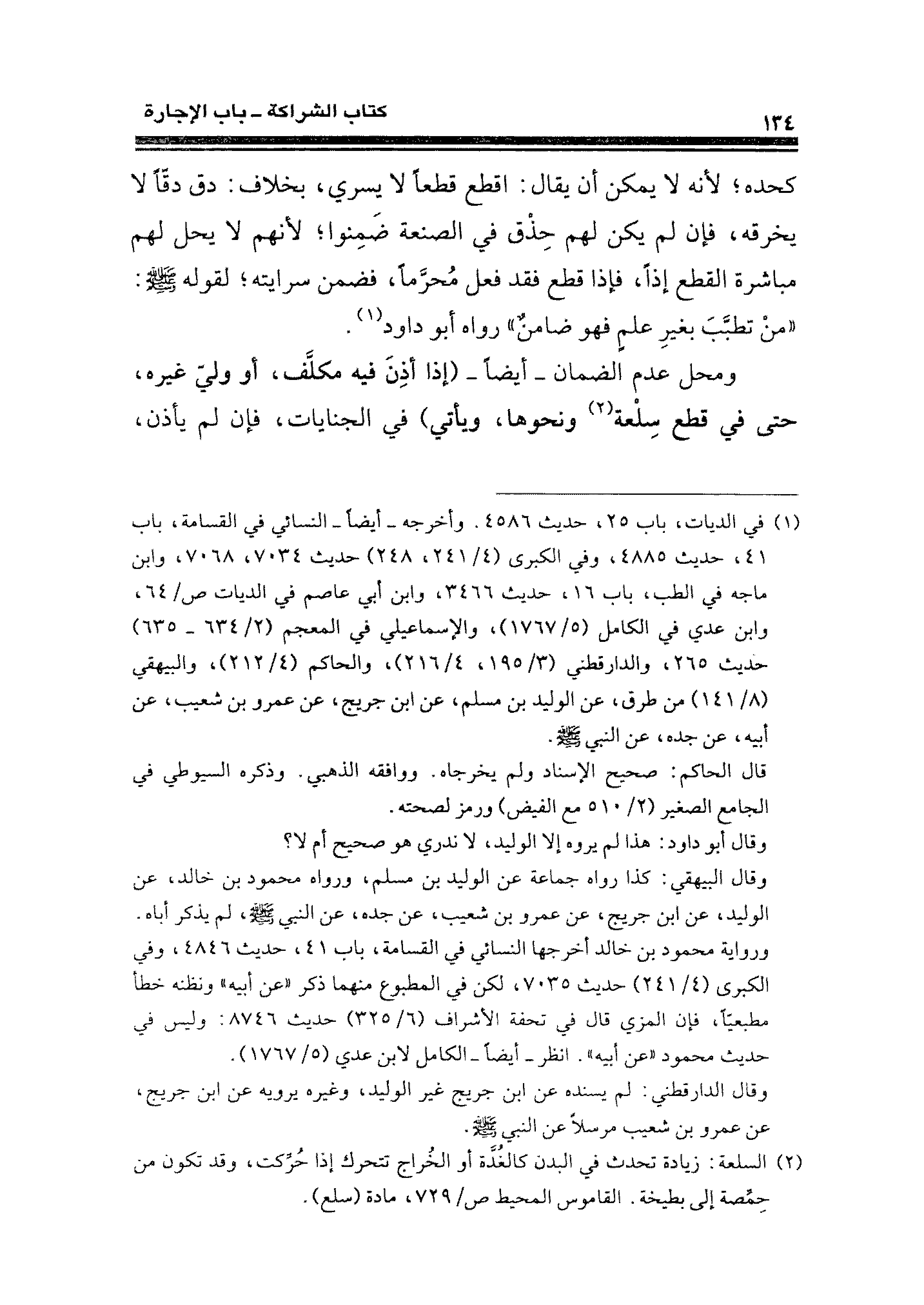(¬١) في الديات، باب ٢٥، حديث ٤٥٨٦. وأخرجه -أيضًا- النسائي في القسامة، باب ٤١، حديث ٤٨٨٥، وفي الكبرى (٤/ ٢٤١، ٢٤٨) حديث ٧٠٣٤، ٧٠٦٨، وابن ماجه في الطب، باب ١٦، حديث ٣٤٦٦، وابن أبي عاصم في الديات ص / ٦٤، وابن عدي في الكامل (٥/ ١٧٦٧)، والإسماعيلي في المعجم (٢/ ٦٣٤ - ٦٣٥) حديث ٢٦٥، والدارقطني (٣/ ١٩٥، ٤/ ٢١٦)، والحاكم (٤/ ٣١٣)، والبيهقي (٨/ ١٤١) من طرق، عن الوليد بن مسلم، عن ابن جريج، عن عمرو بن شعيب، عن أبيه، عن جده، عن النبي - صلى الله عليه وسلم -.