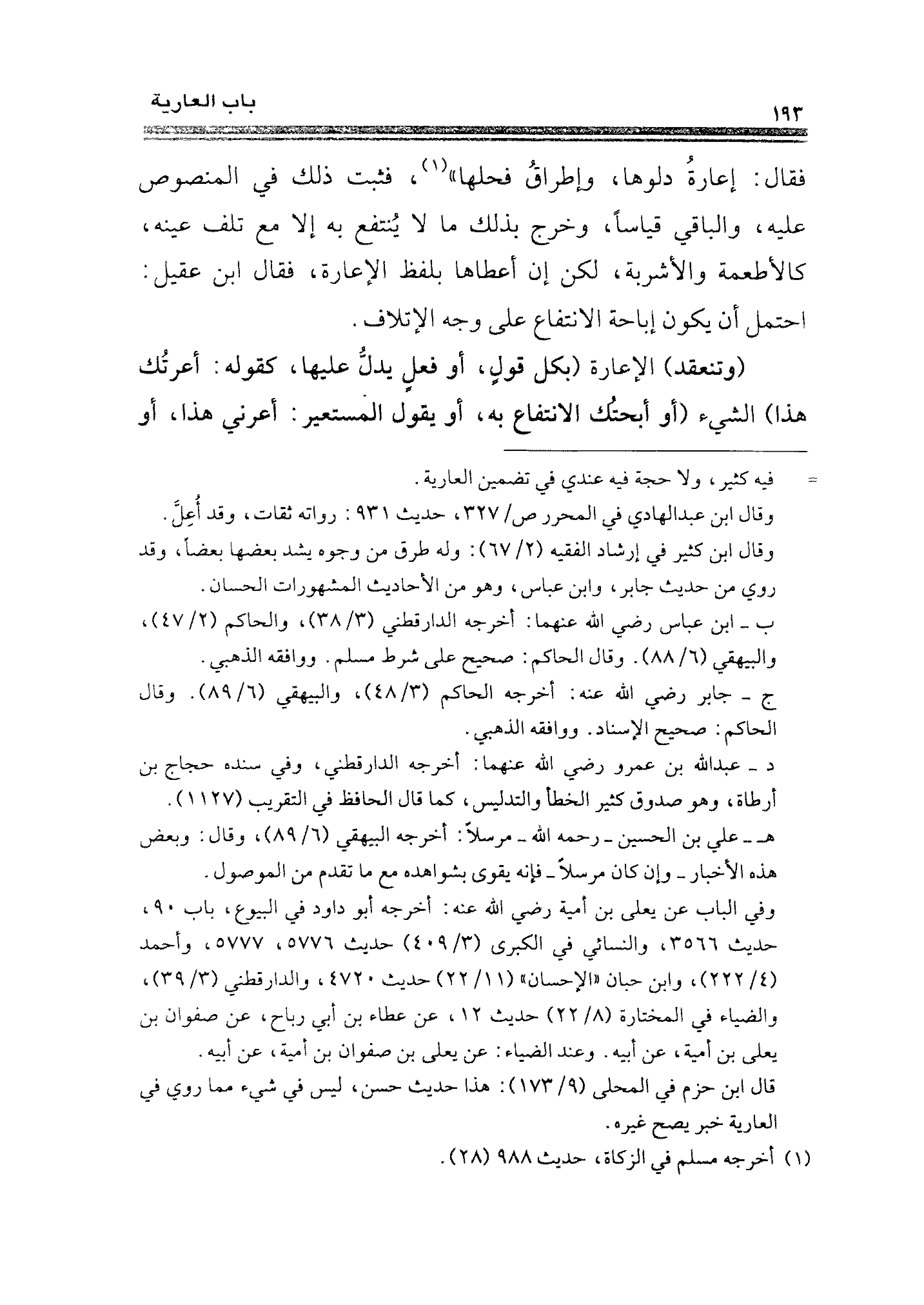 قال ابن حزم في المحلى (٩/ ١٧٣): هذا حديث حسن ليس في شيء مما روي في العارية خبر يصح غيره.