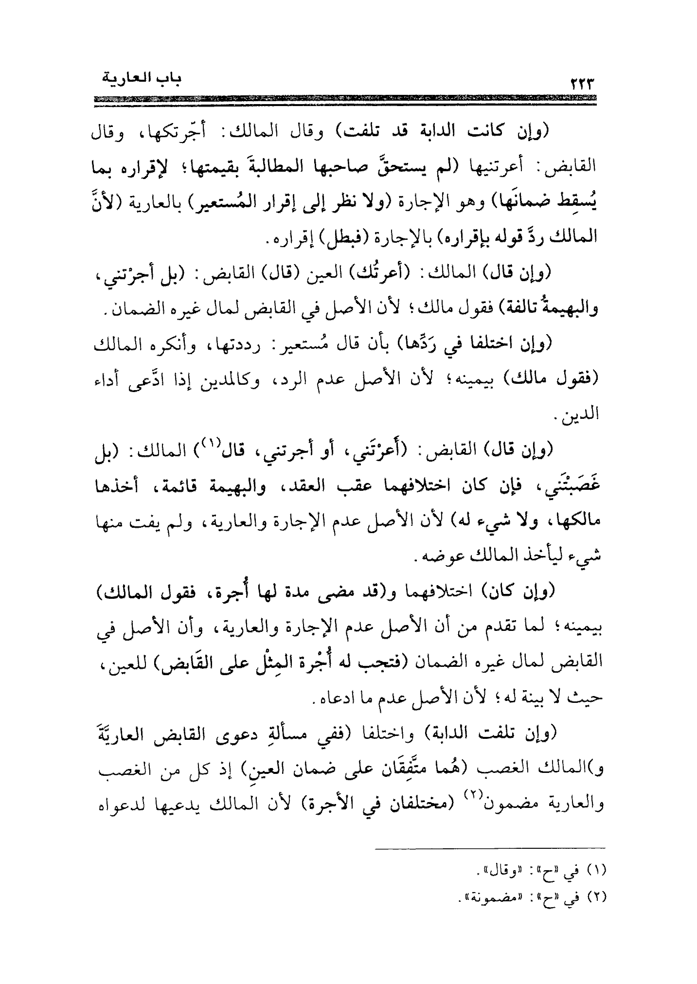 (وإن كانت الدابة قد تلفت) وقال المالك: أجرتكها، وقال القابض: أعرتنيها (لم يستحق ضاحبها المطالبةَ بقيمتها؛ لإقراره بما يسقِط ضمانَها) وهو الإجارة (ولا نظر إلى إقرار المُستعير) بالعارية (لأن المالك ردَّ قوله بإقراره) بالإجارة (فبطل) إقراره.
