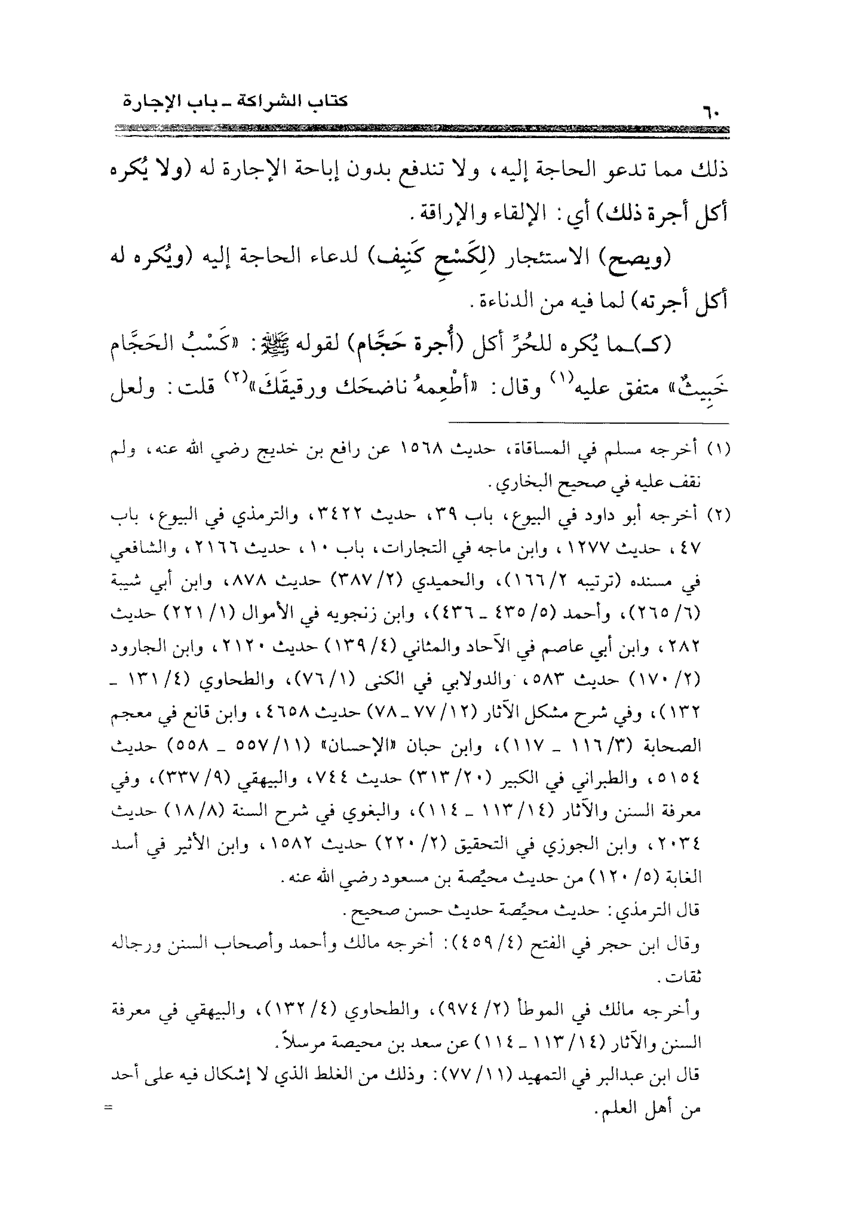 (كـ) ـما يُكره للحُرِّ أكل (أجرة حَجَّام) لقوله - صلى الله عليه وسلم -: "كَسْبُ الحَجَّام خَبِيثٌ" متفق عليه (¬١) وقال: "أطْعِمهُ ناضحَك ورقيقَك" (¬٢) قلت: ولعل