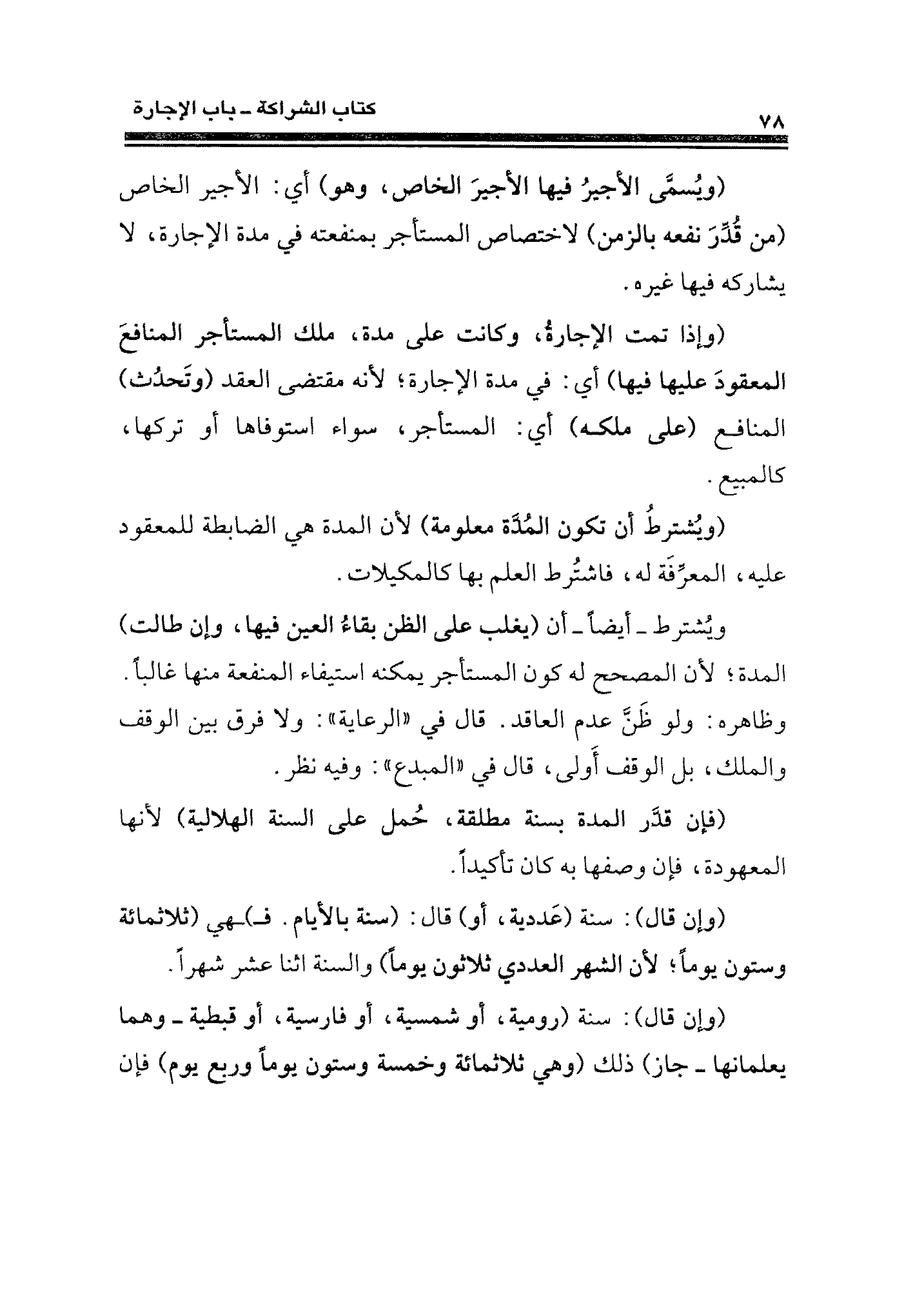 (فإن قدَّر المدة بسنة مطلقة، حُمل على السنة الهلالية) لأنها المعهودة، فإن وصفها به كان تأكيدًا.