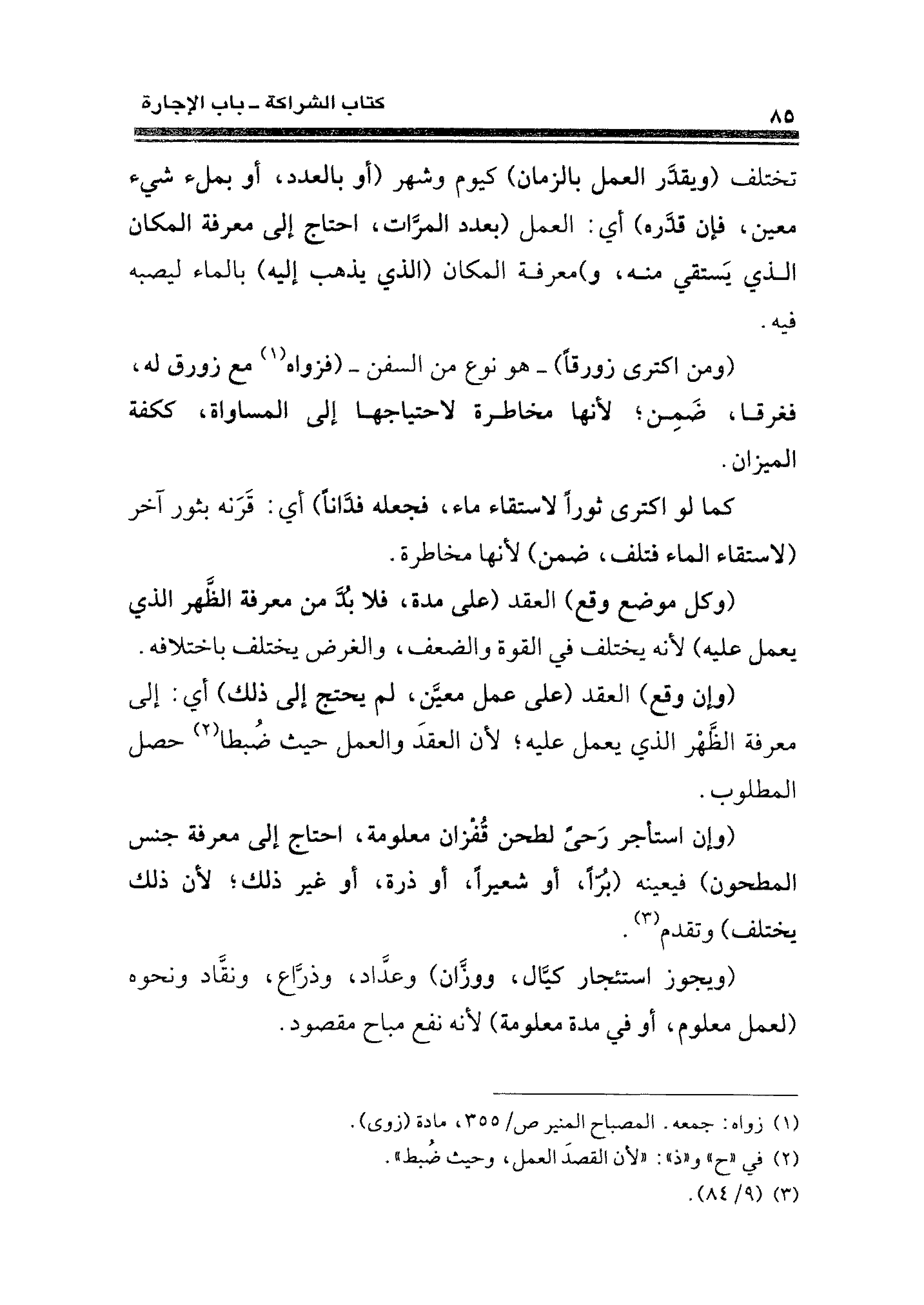 (وكل موضع وقع) العقد (على مدة، فلا بُدَّ من معرفة الظَّهر الذي يعمل عليه) لأنه يختلف في القوة والضعف، والغرض يختلف باختلافه.