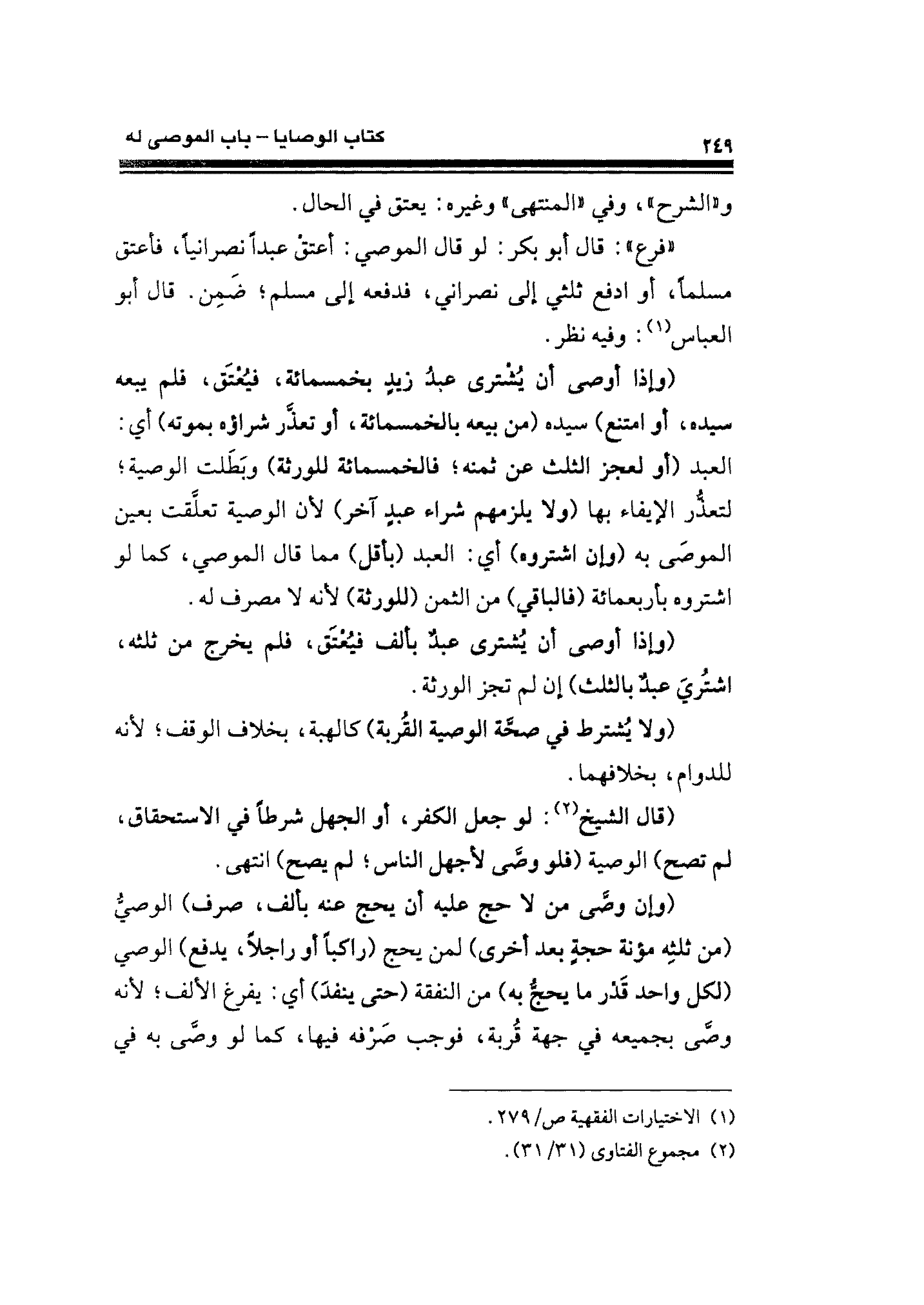 (¬١) الاختيارات الفقهية ص / ٢٧٩.