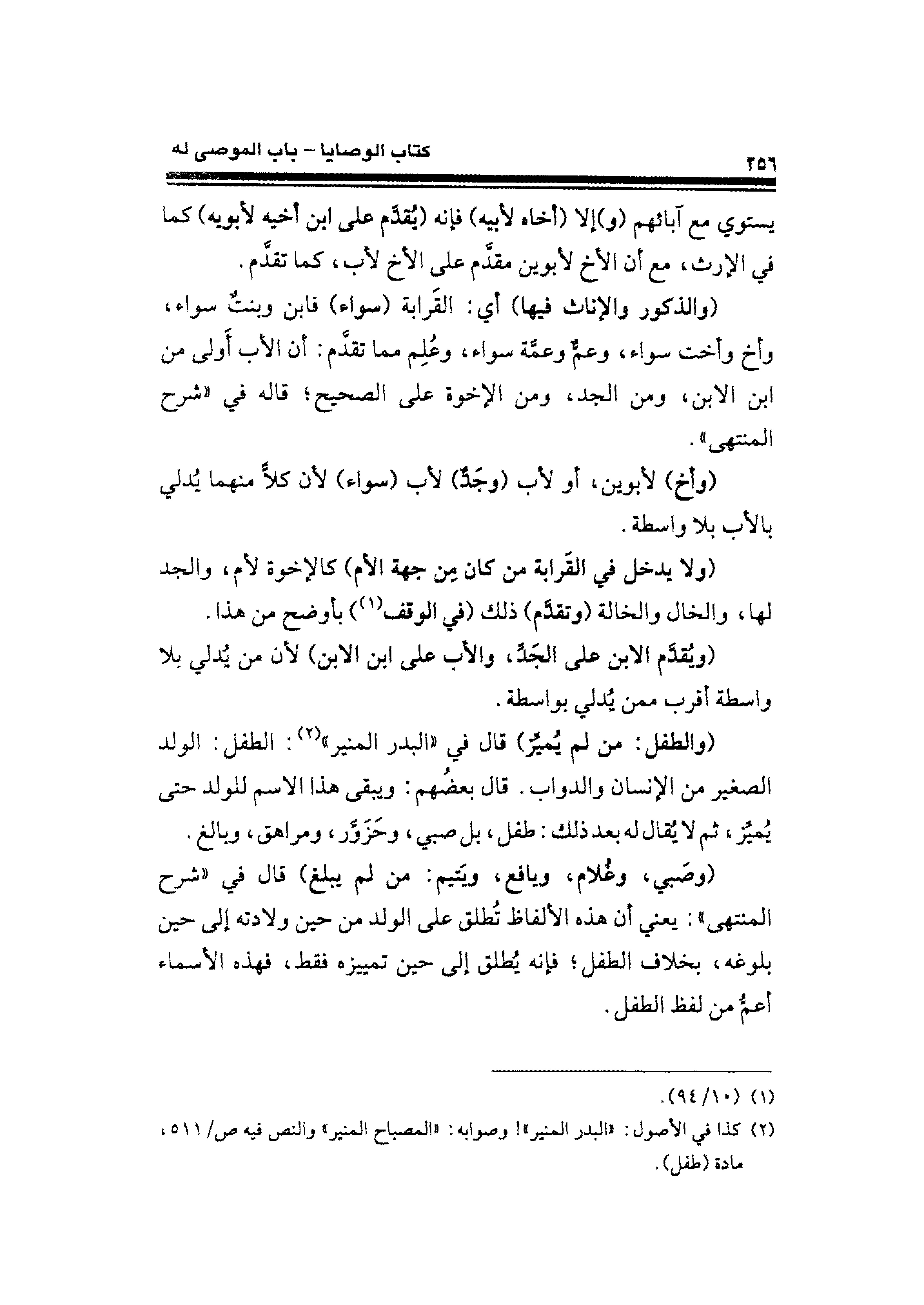 (¬٢) كذا في الأصول: "البدر المنير"! وصوابه: "المصباح المنير"، والنص فيه ص / ٥١١، مادة (طفل).
