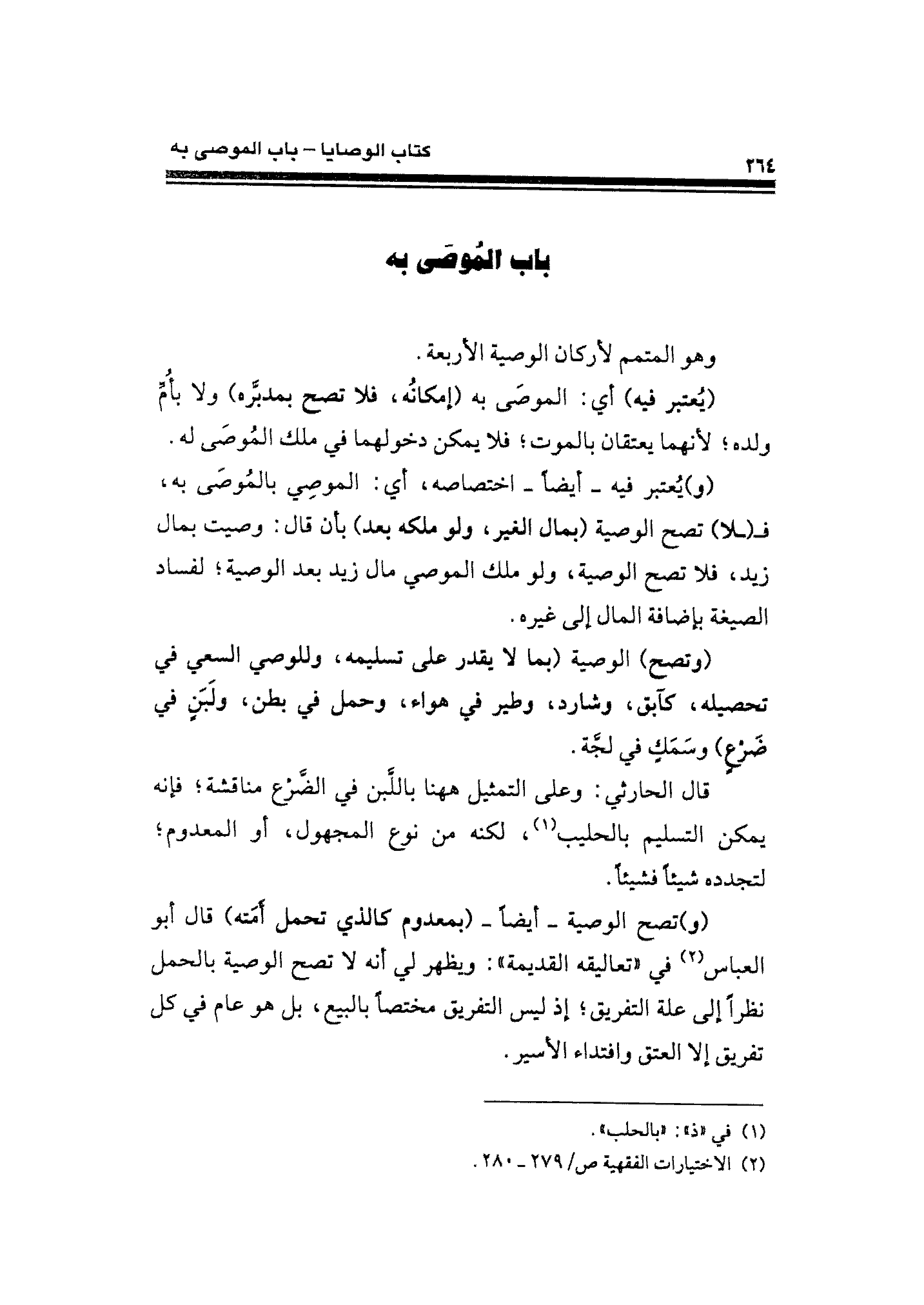 (¬٢) الاختيارات الفقهية ص / ٢٧٩ - ٢٨٠.