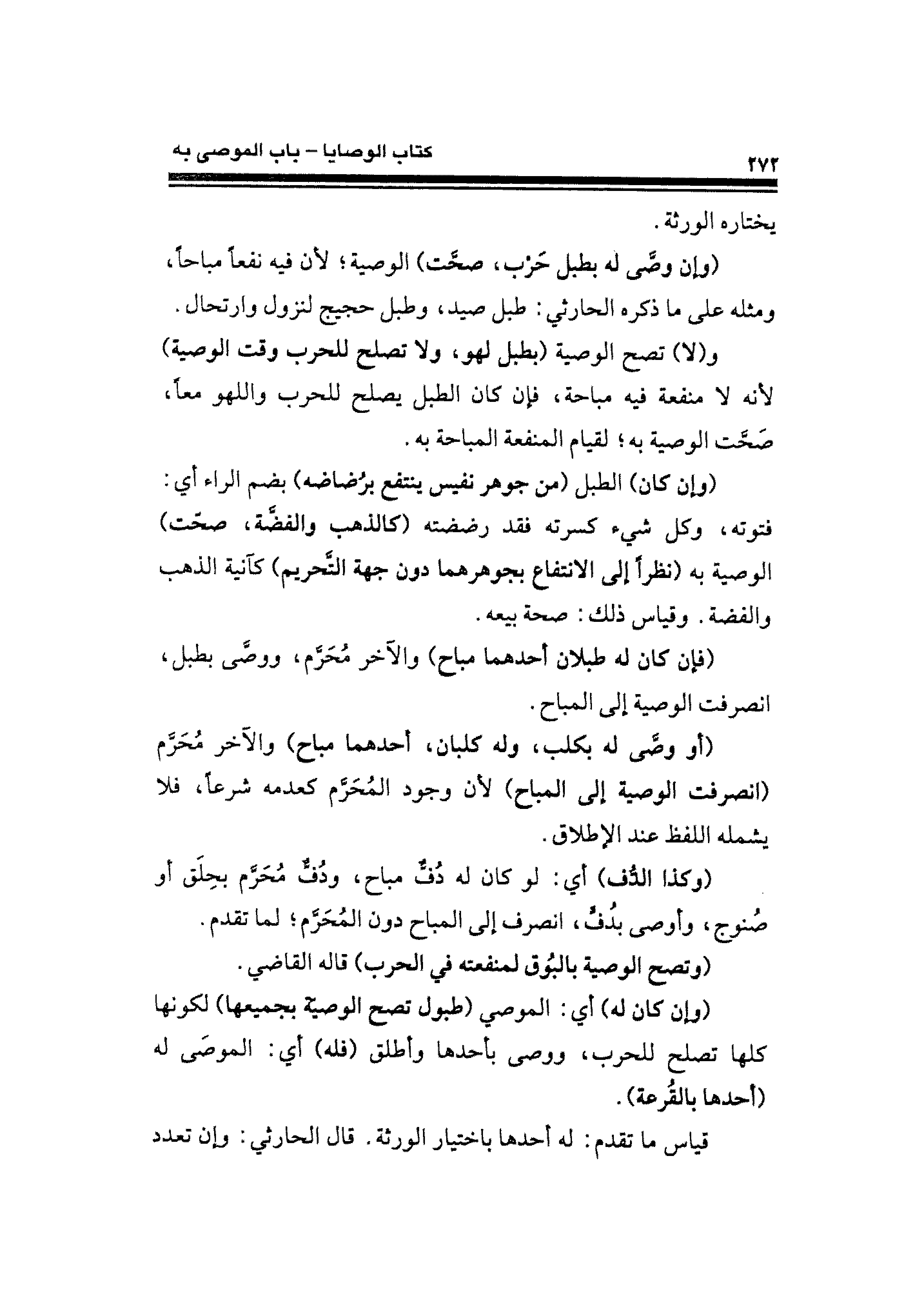 (فإن كان له طبلان أحدهما مباح) والآخر مُحَرَّم، ووصَّى بطبل، انصرفت الوصية إلى المباح.