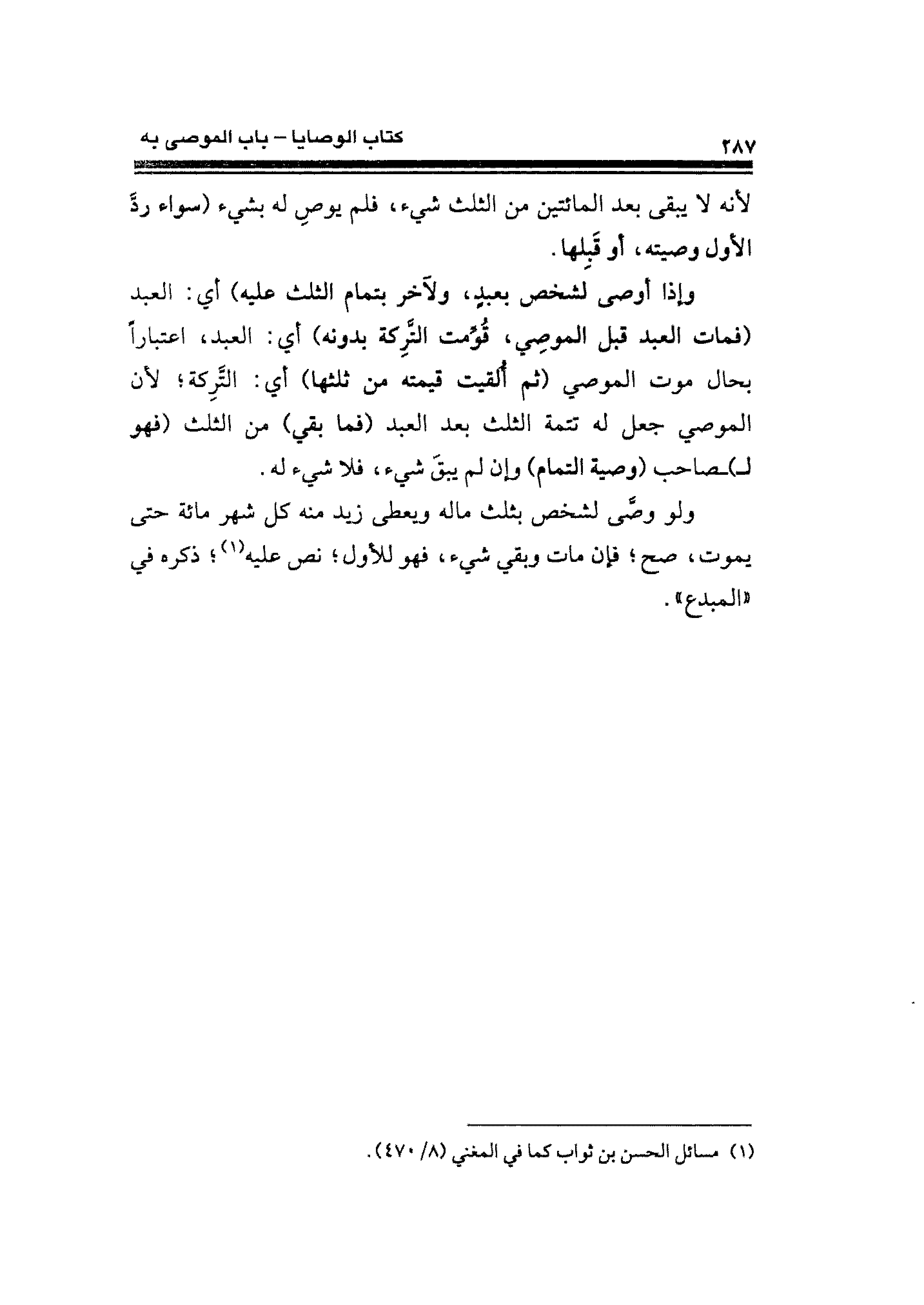 (¬١) مسائل الحسن بن ثواب كما في المغني (٨/ ٤٧٠).