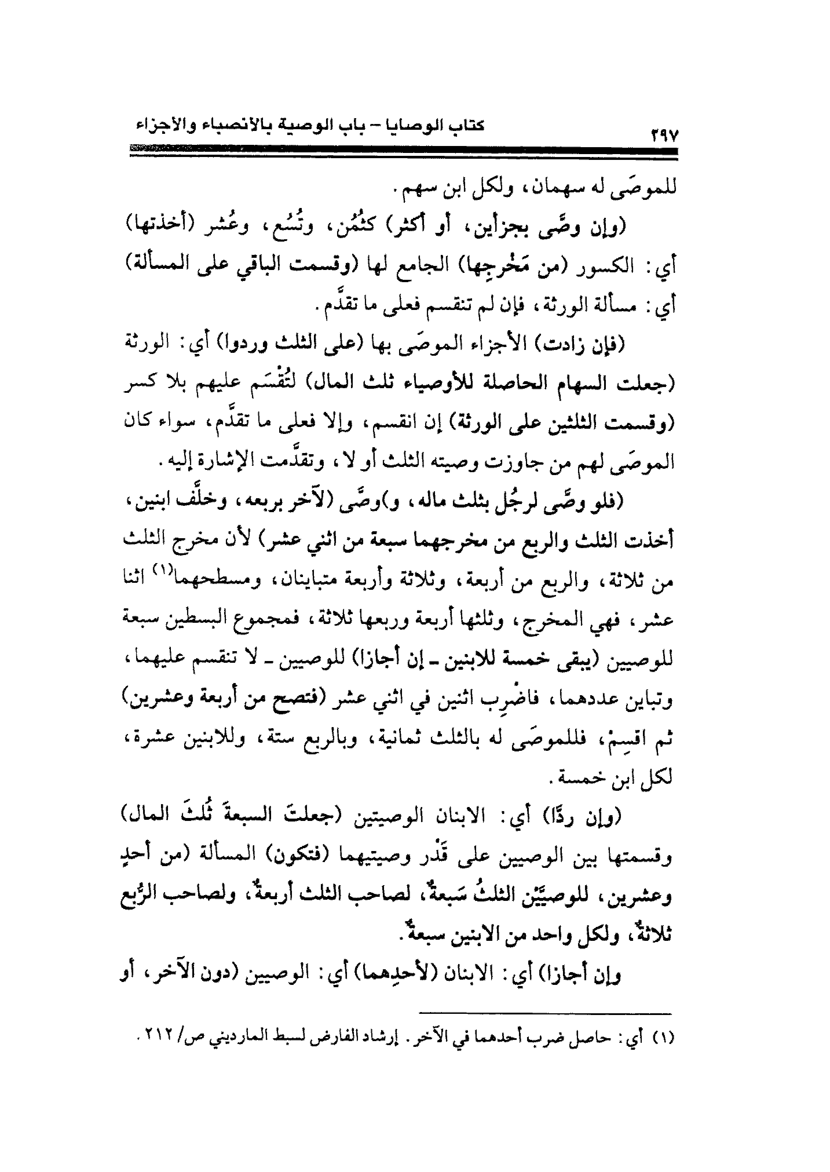 (¬١) أي: حاصل ضرب أحدهما في الآخر، إرشاد الفارض لسبط المارديني ص / ٢١٢.