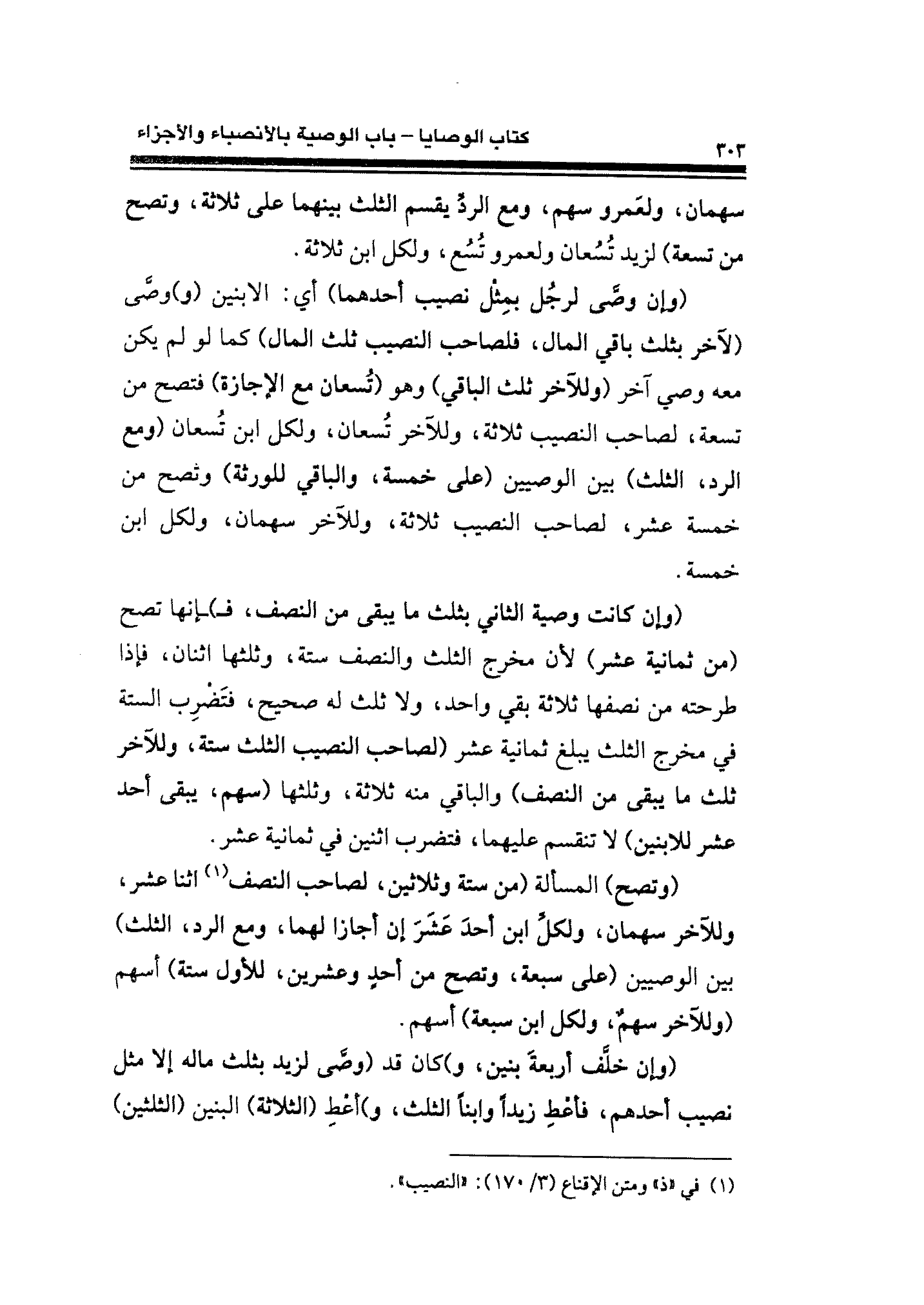 (¬١) في "ذ" ومتن الإقناع (٣/ ١٧٠): "النصيب".