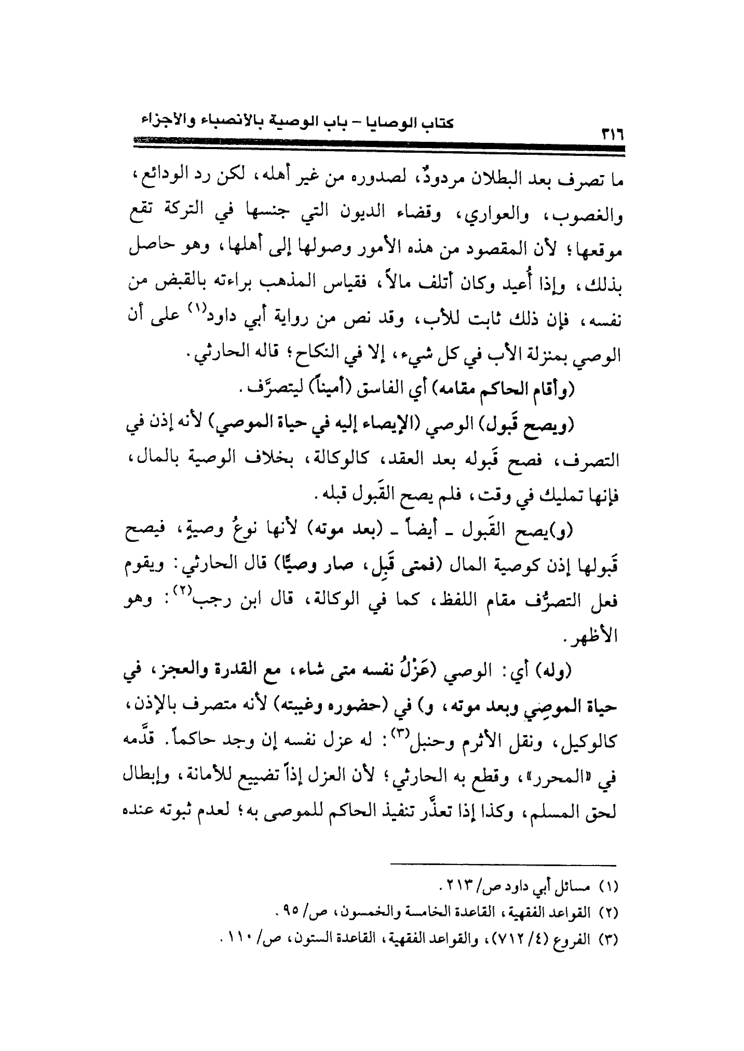 (¬٣) الفروع (٤/ ٧١٢)، والقواعد الفقهية، القاعدة الستون، ص / ١١٠.