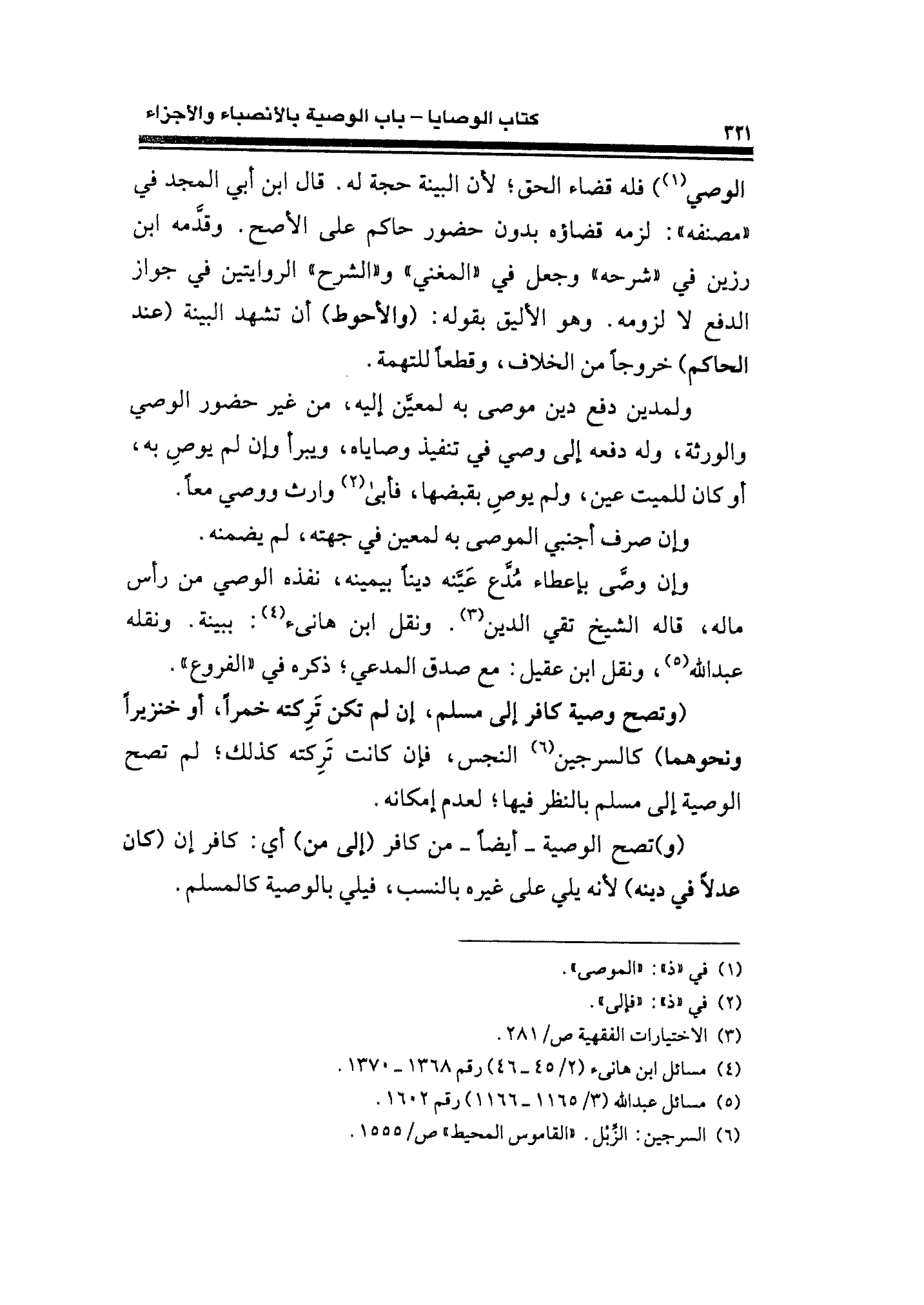 (وتصح وصية كافر إلى مسلم، إن لم تكن تَرِكته خمرًا، أو خنزيرًا ونحوهما) كالسرجين (¬٦) النجس، فإن كانت تَرِكته كذلك؛ لم تصح الوصية إلى مسلم بالنظر فيها؛ لعدم إمكانه.