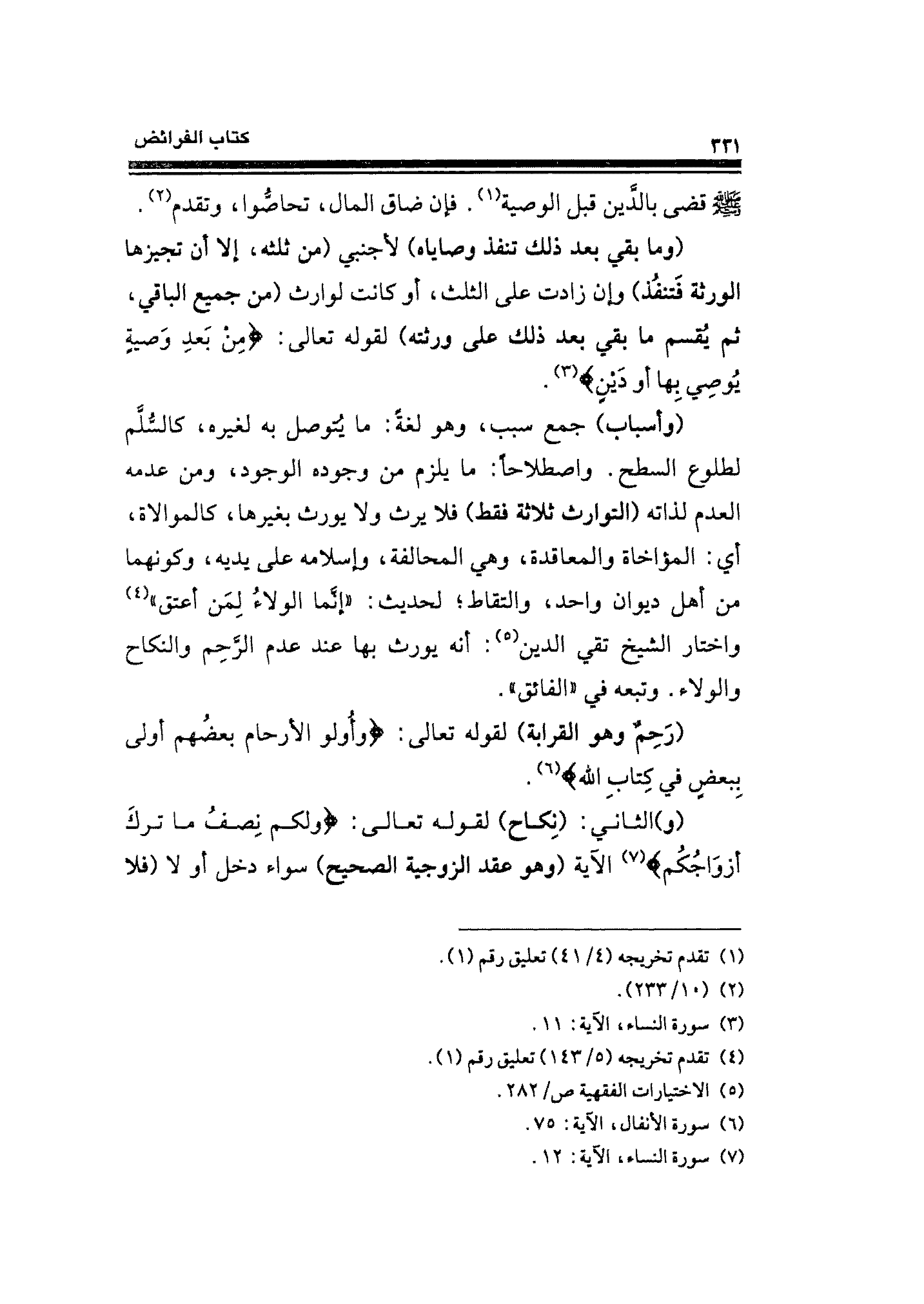 (¬٥) الاختيارات الفقهية ص / ٢٨٢.