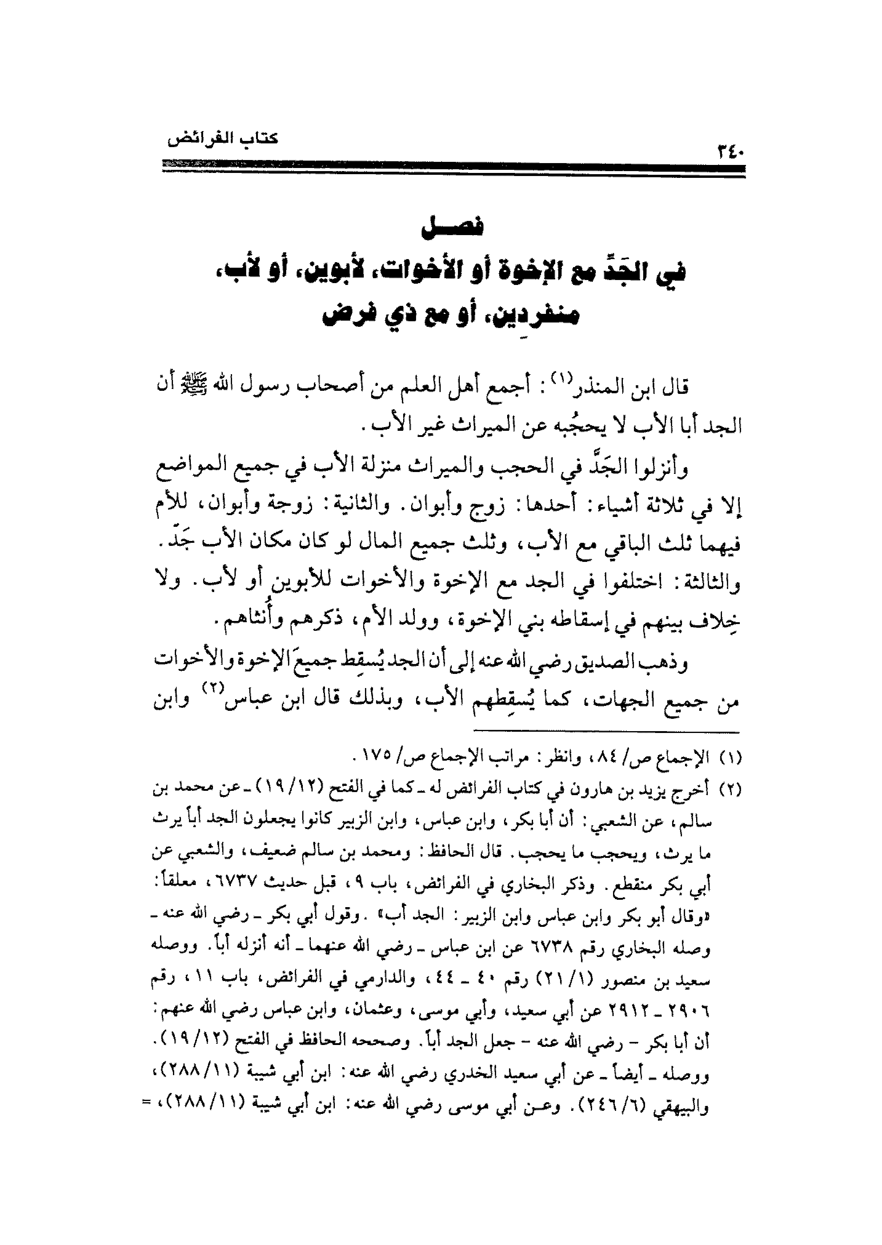 فصل في الجَدِّ مع الإخوة أو الأخوات، لأبوين، أو لأب، منفردين، أو مع ذي فرض