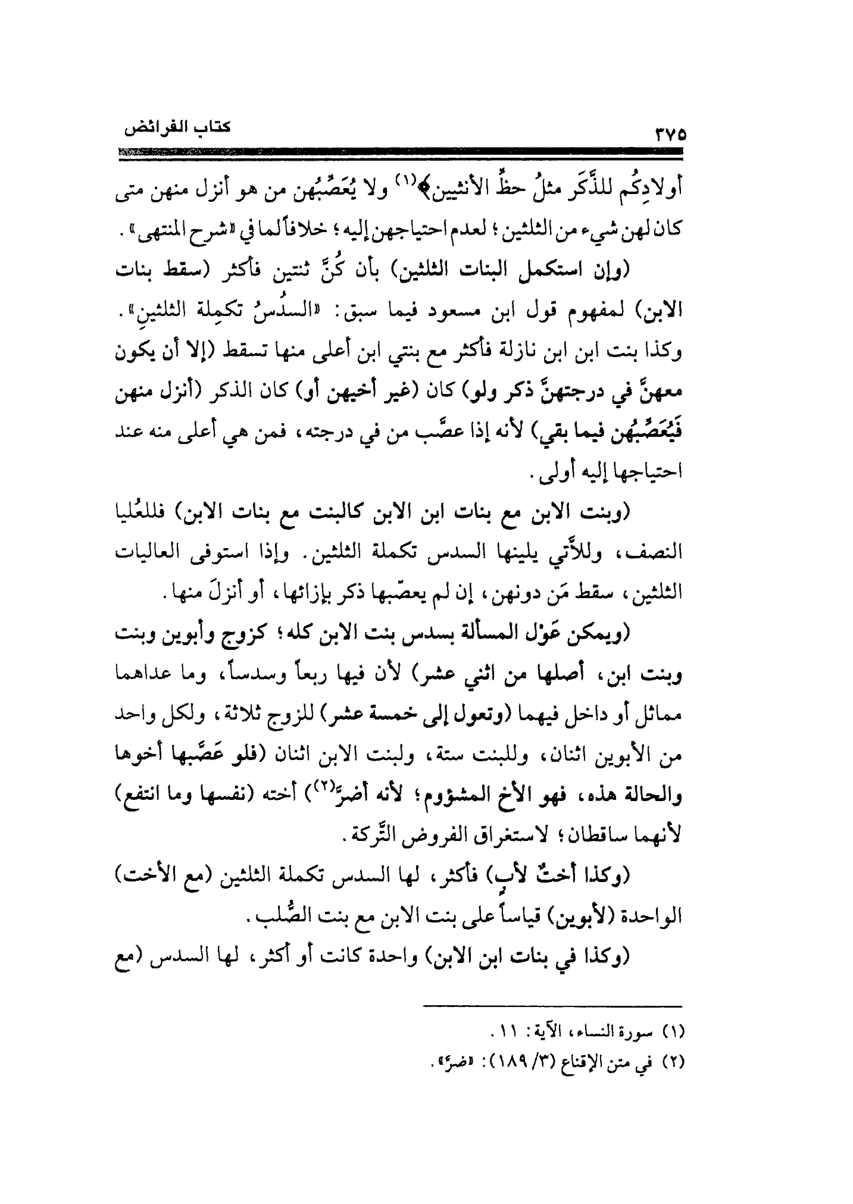 (¬١) سورة النساء الآية: ١١.
