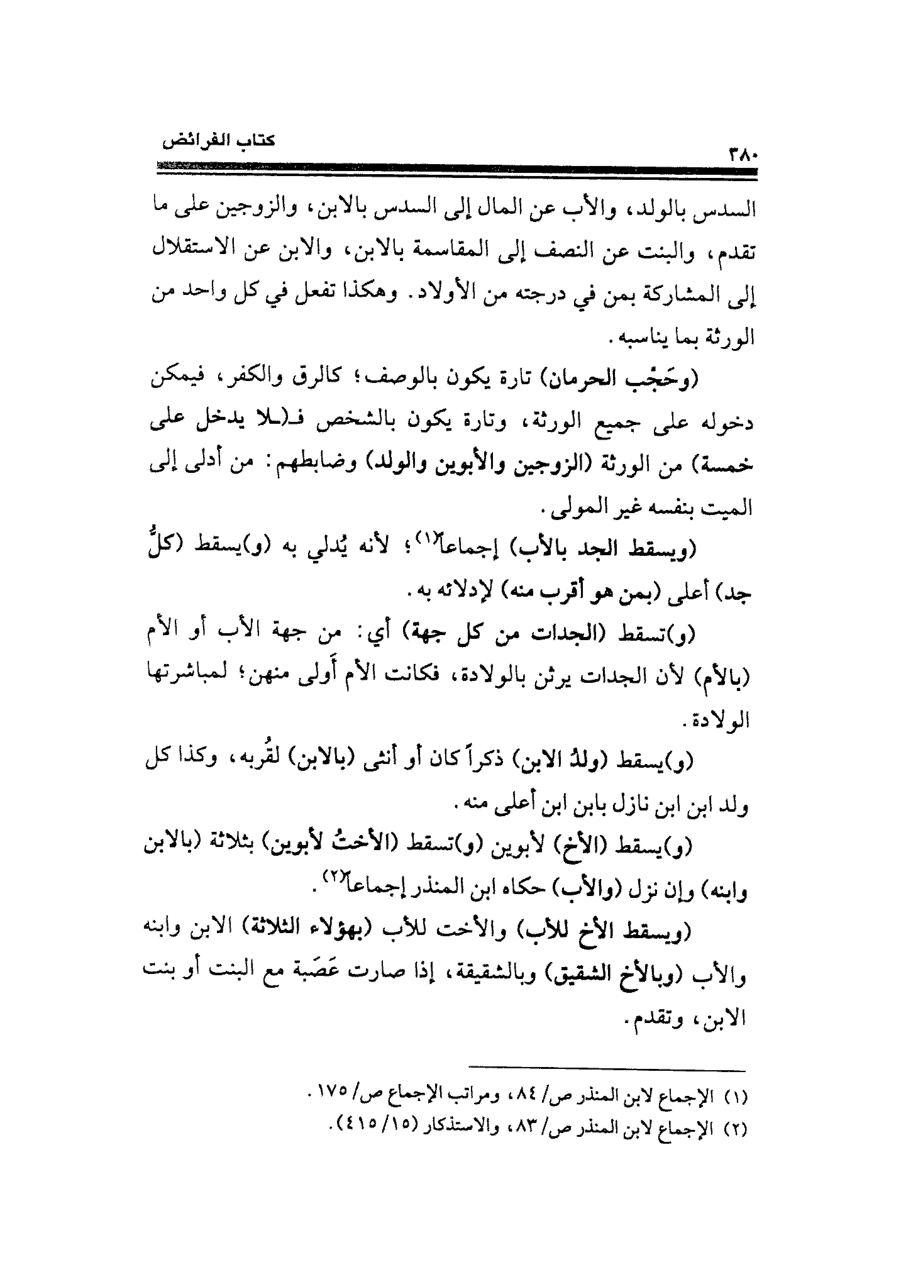 (¬٢) الإجماع لابن المنذر ص / ٨٣، والاستذكار (١٥/ ٤١٥).