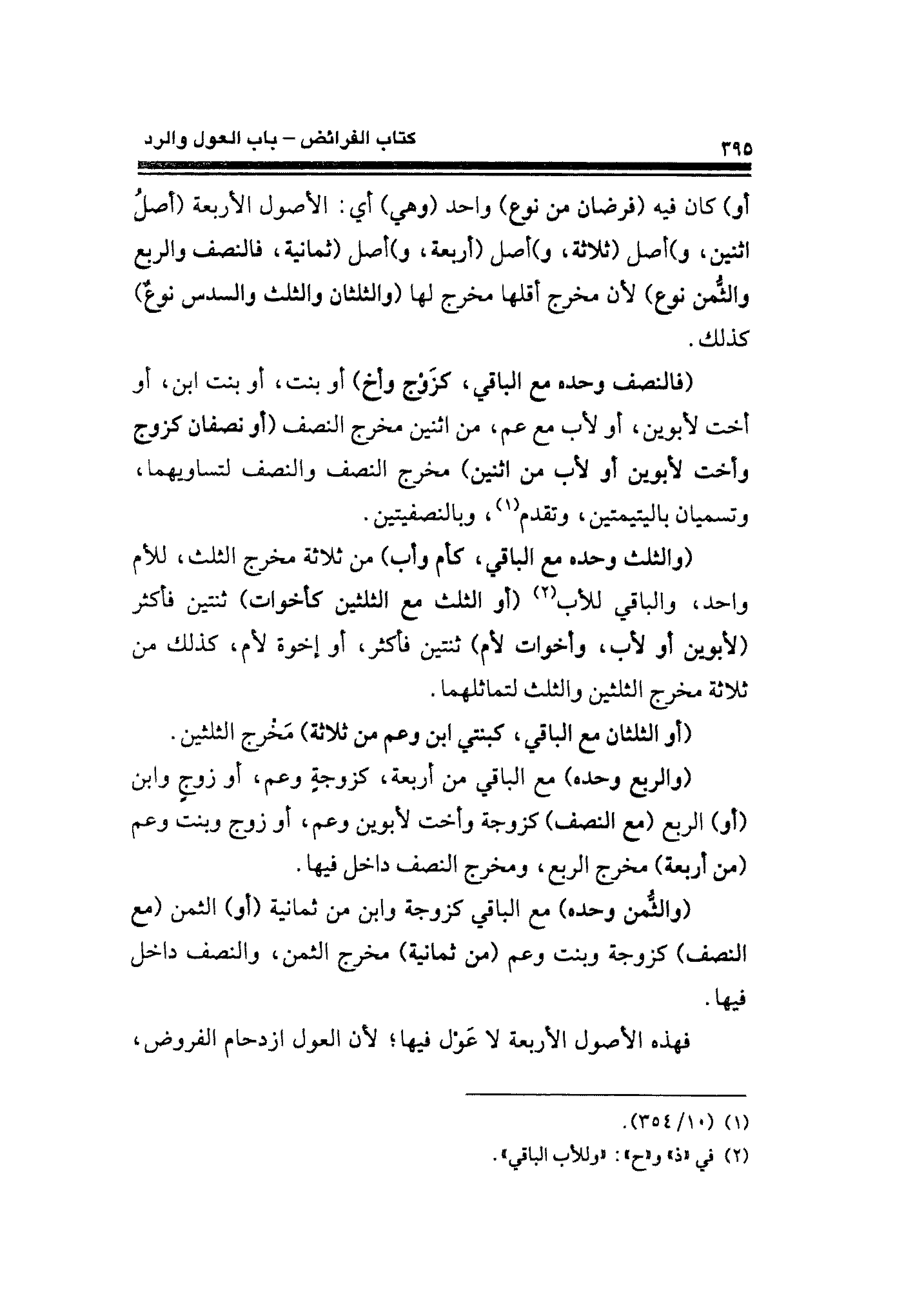 فهذه الأصول الأربعة لا عَوْل فيها؛ لأن العول ازدحام الفروض،