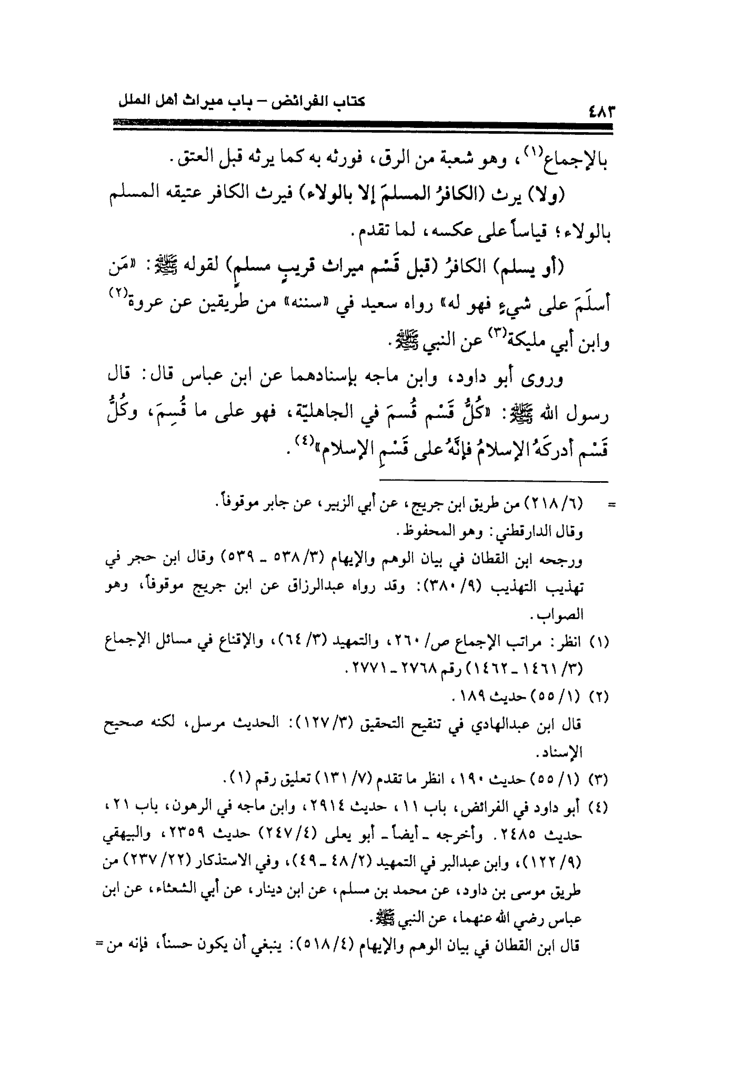 (¬١) انظر: مراتب الإجماع ص/ ٢٦٠، والتمهيد (٣/ ٦٤)، والإقناع في مسائل الإجماع (٣/ ١٤٦١ - ١٤٦٢) رقم ٢٧٦٨ - ٢٧٧١.