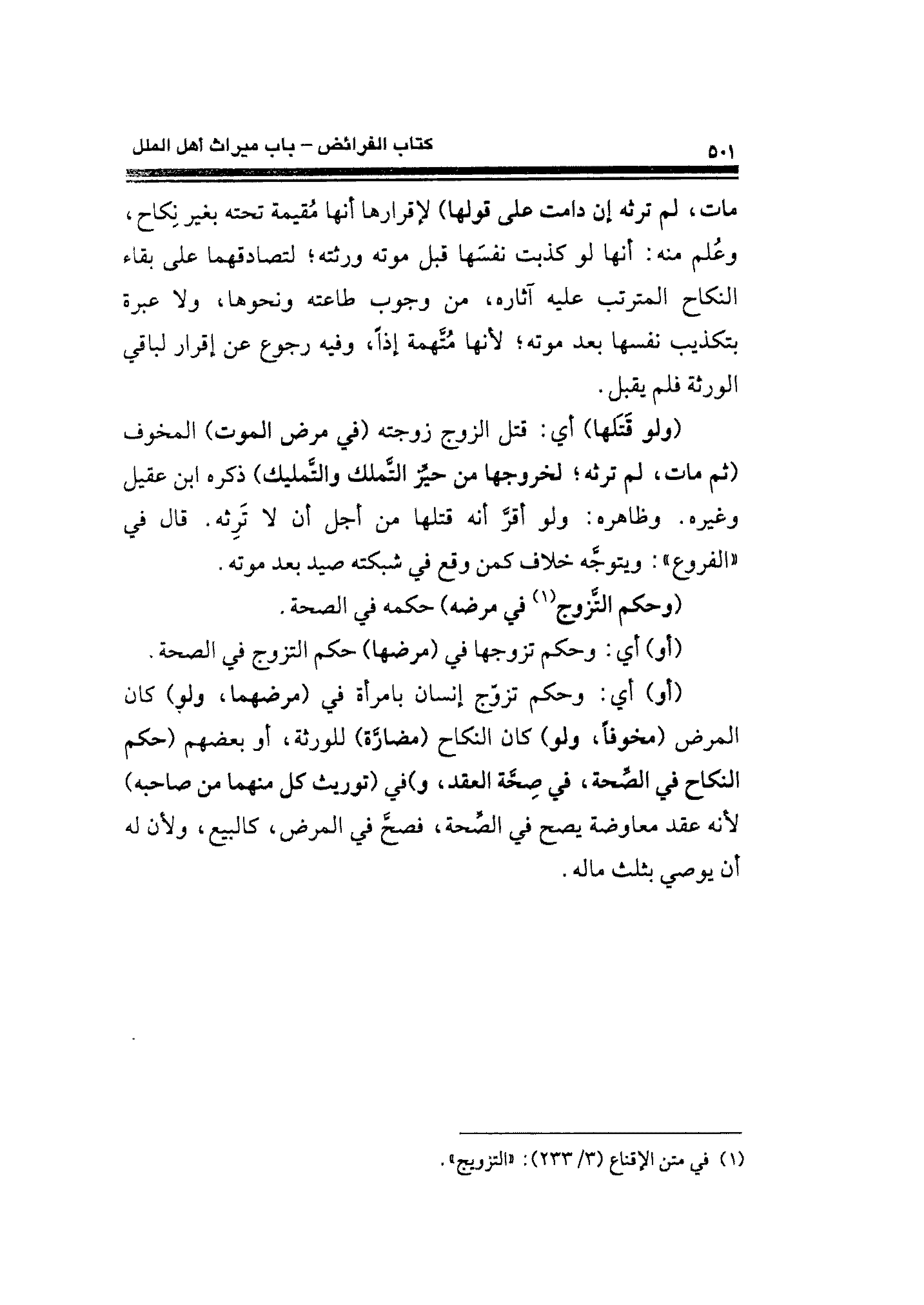 (¬١) في متن الإقناع (٣/ ٢٣٣): "التزويج".