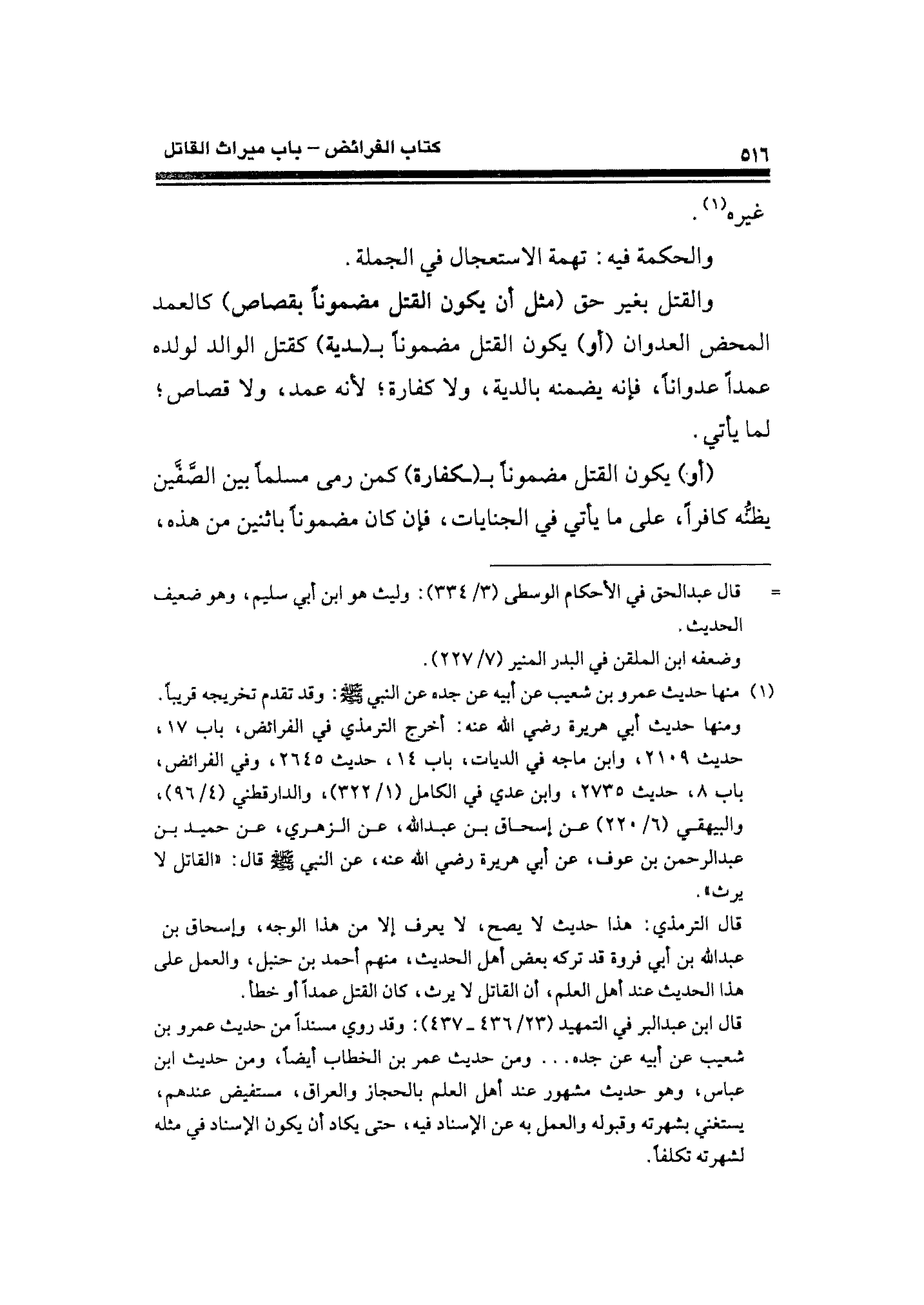 (¬١) منها حديث عمرو بن شعيب عن أبيه عن جده عن النبي -صلى الله عليه وسلم-: وقد تقدم تخريجه قريبًا.
